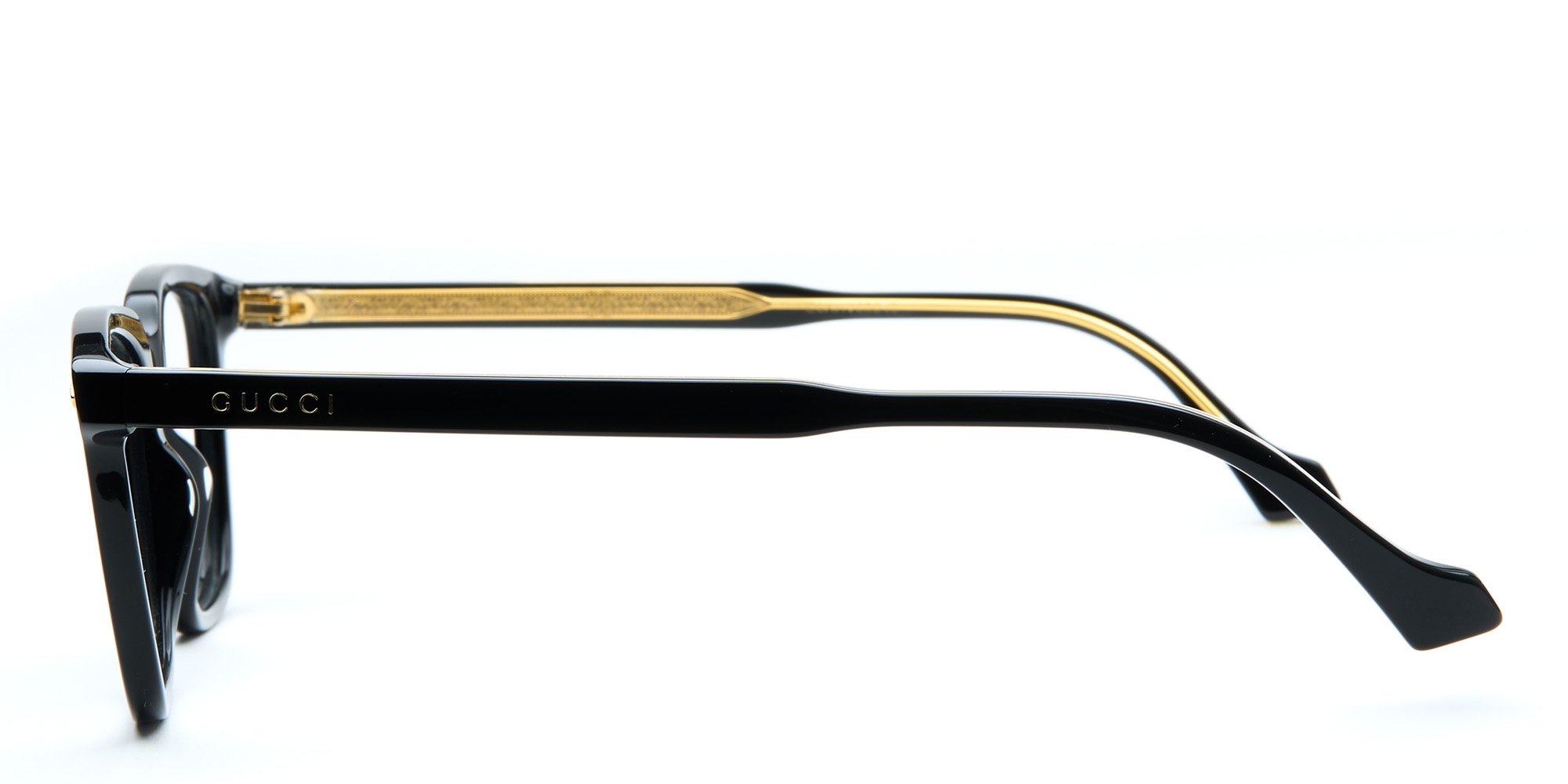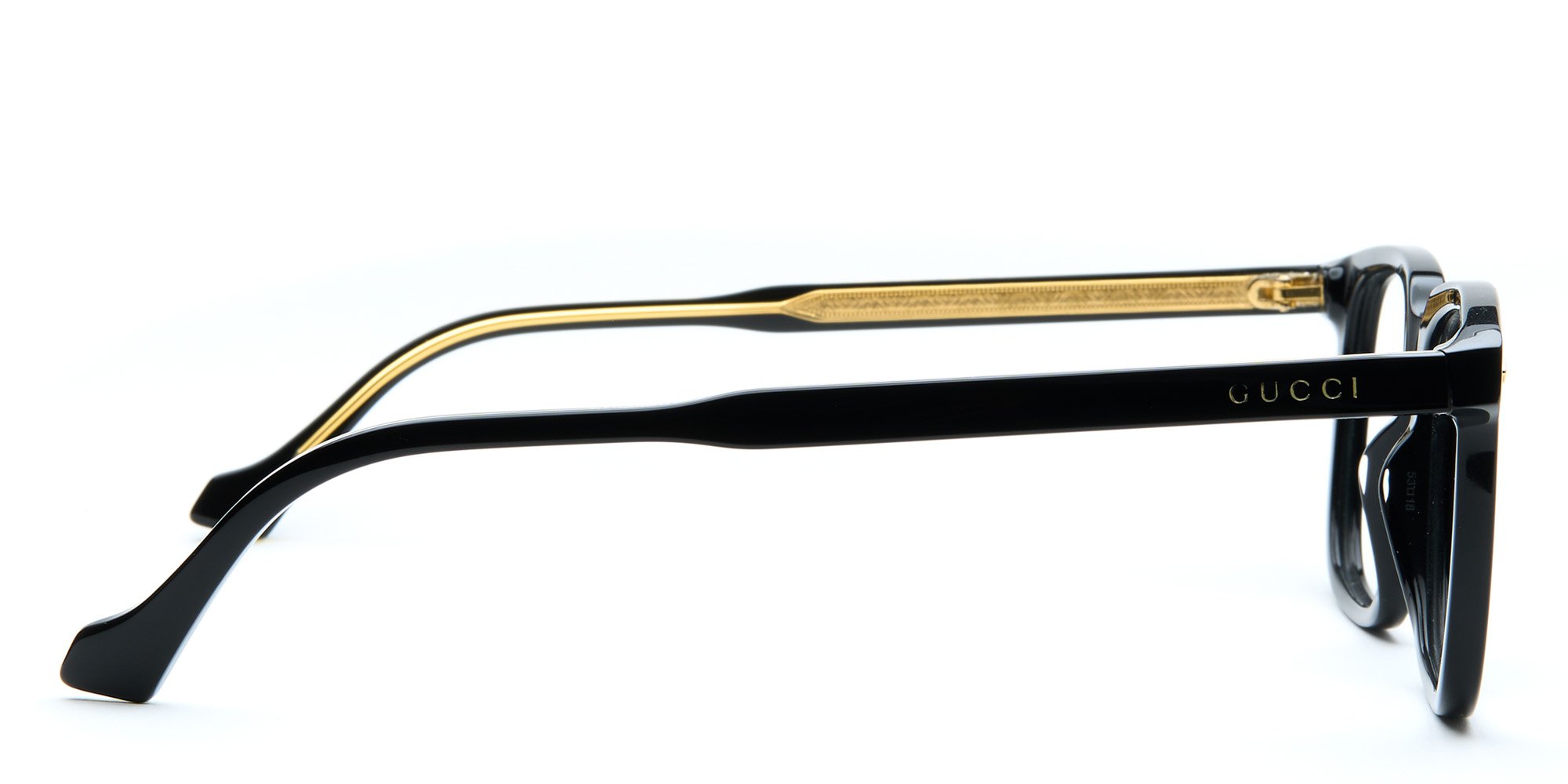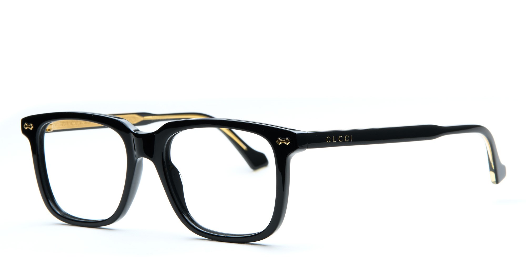 Be the fashion forward professional wearing the Gucci GG0737O eyeglasses. The timeless rectangular design gets a smart update with an unusual browline and pronounced wingtips for statement making style. The signature logo near the hinge complements the rivets on the endpoints for a cohesive look. The lustrous and lightweight performance plastic construction and easy to repair conventional hinges offer impressive durability. Complete your wardrobe wearing these refined eyeglasses from Gucci.