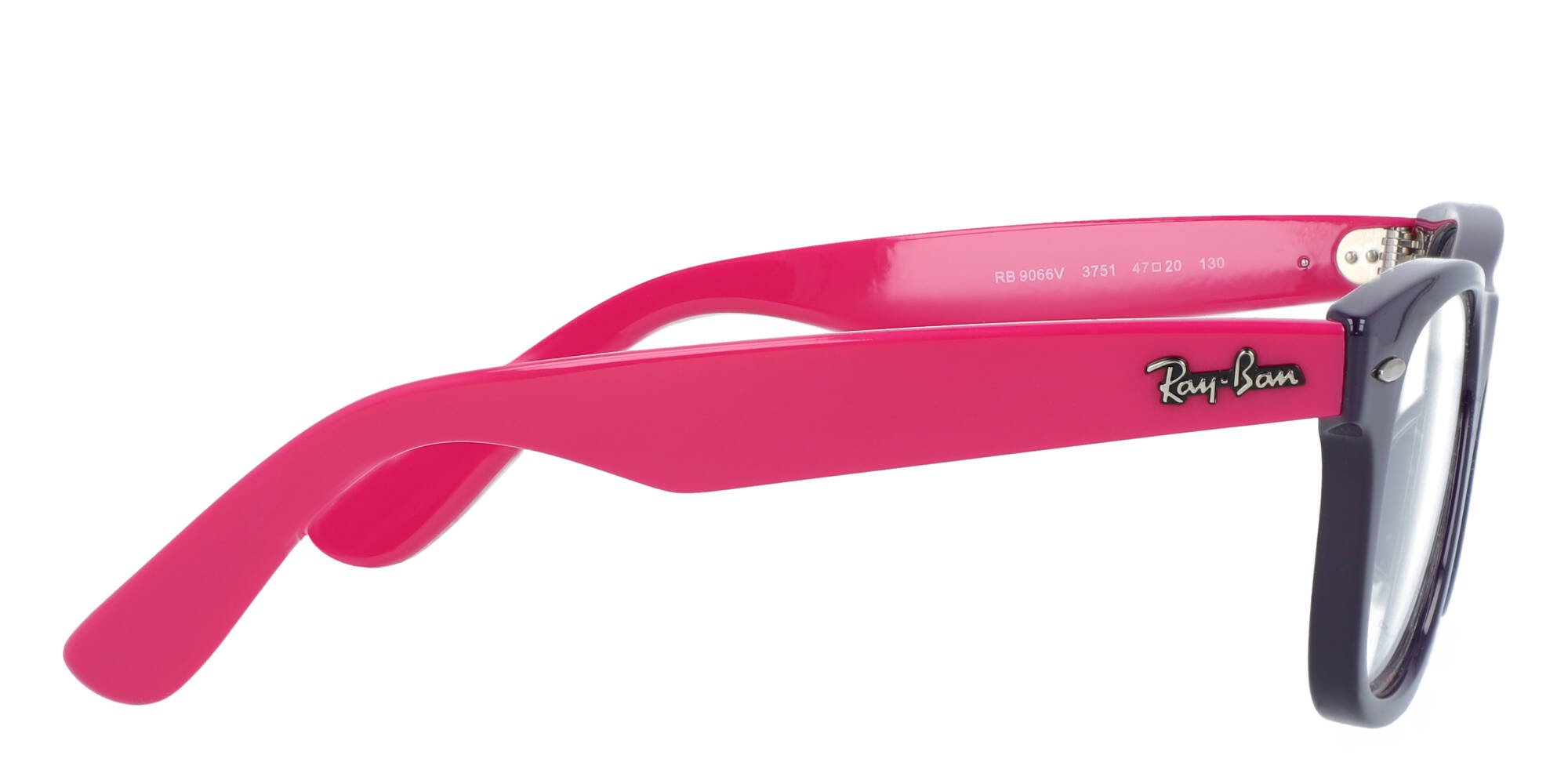 Ray-Ban suggests its never too early to make a personal statement with its RY9066V eyeglasses for children. Designed in an iconic Wayfarer silhouette, complete with shark fin temples and riveted endpoints, these frames are the perfect size for the fashion conscious kid. The frames are crafted in hypoallergenic acetate thats durable, lightweight, and strong enough to take on sports and other outdoor activities. The temples curve inward for stability behind the ears, and come with the signature raised Ray-Ban logo near the brow end.