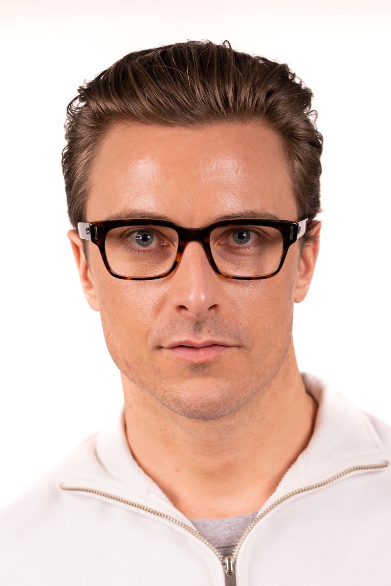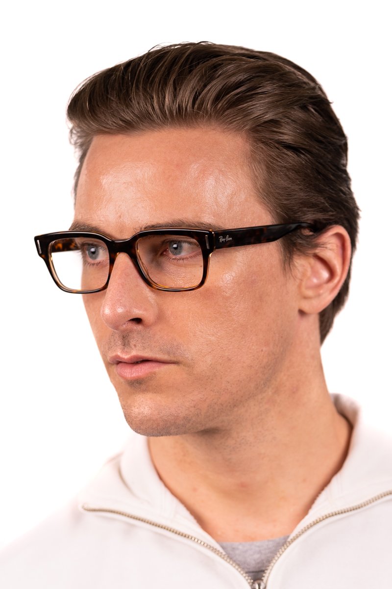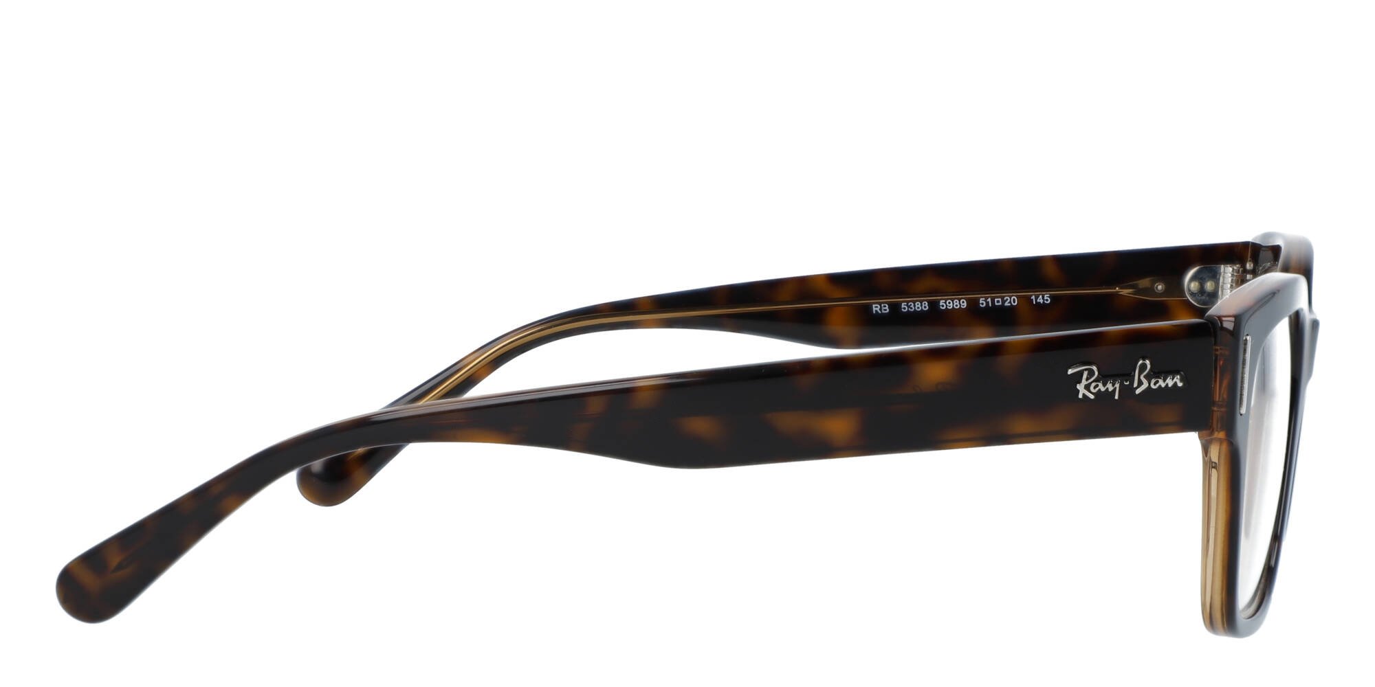 Satisfy your inner fashion maven in the Ray-Ban RX5388 eyeglasses. With bold full rims and chunky, squared off endpoints, these square frames offer a fresh twist on a classic style. The shark fin temples impart a throwback vibe, and the Ray-Ban logo at the hinge adds designer appeal. Crafted in lightweight performance plastic, these frames come with durable, easy to repair conventional hinges. The ergonomic temple tips curve behind the ears for a secure, comfortable fit. Step out in vintage inspired style wearing these versatile eyeglasses from Ray-Ban.