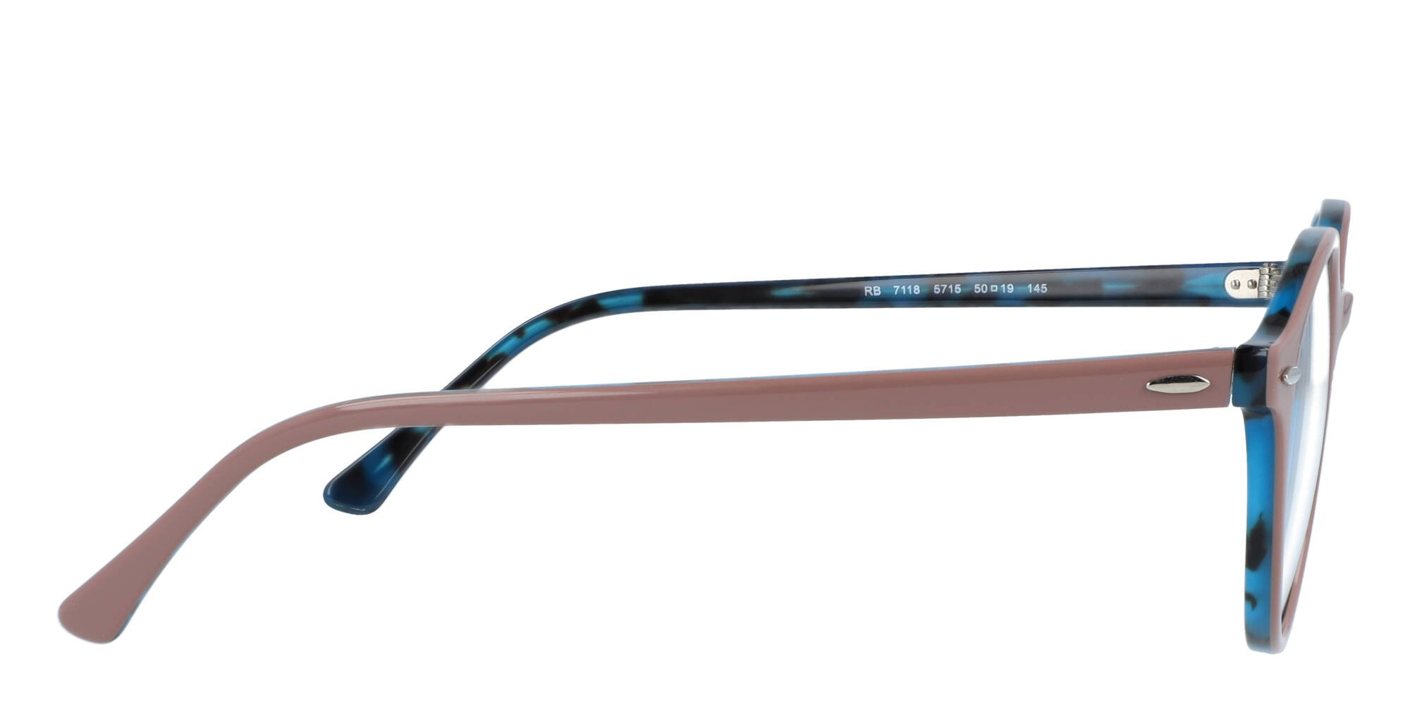 Spark a style revolution with the Ray-Ban RX7118 eyeglasses. Crafted from lustrous acetate, these frames are lightweight, hypoallergenic and durable. Round lenses complement diamond and heart shaped faces, and the classic silhouette easily goes from workdays to nights out. The smooth saddle bridge helps balance the frames for a comfortable fit. With their smart look, these acetate frame Ray-Ban eyeglasses redefine what it means to be a fashion rebel.