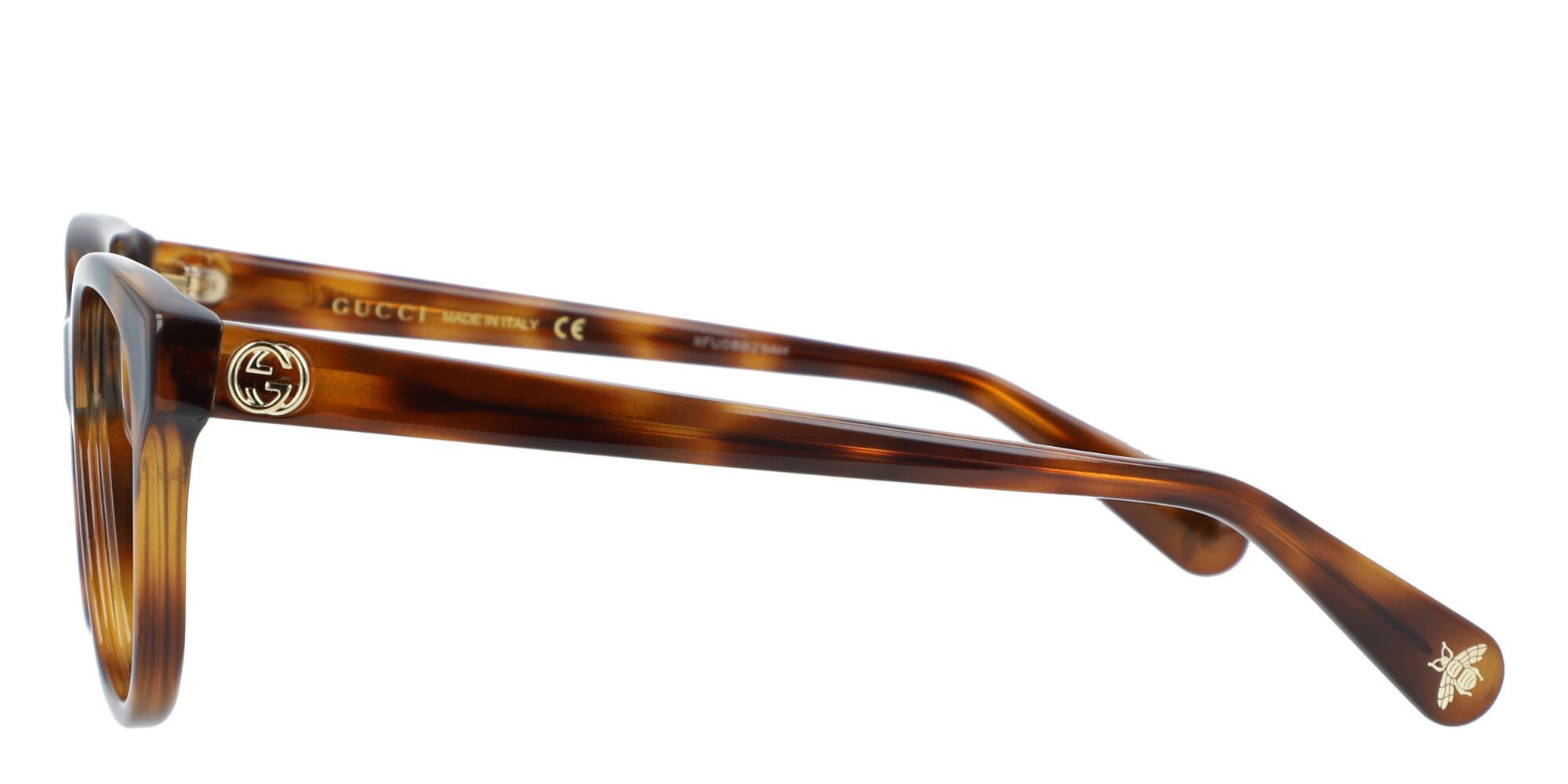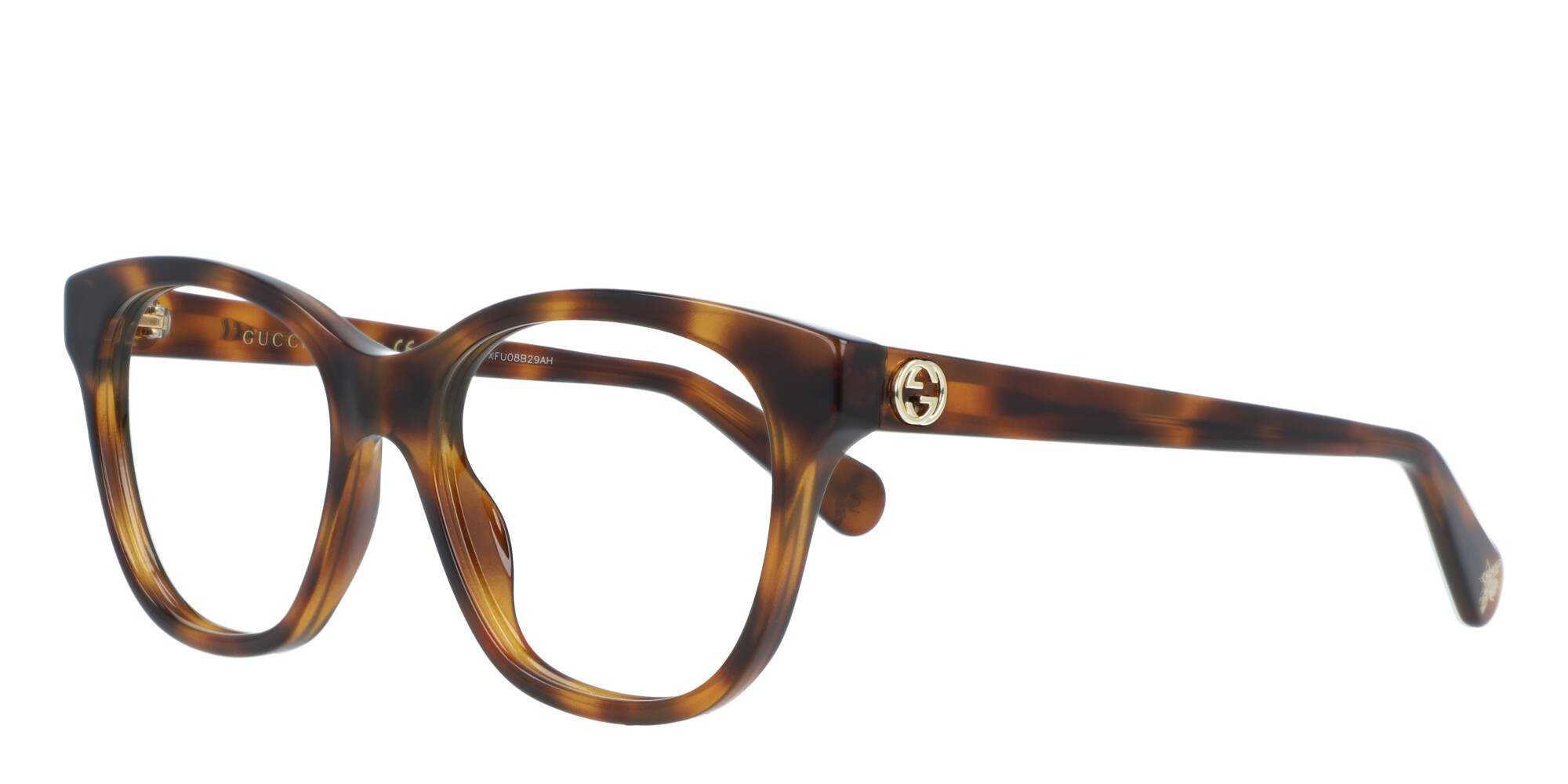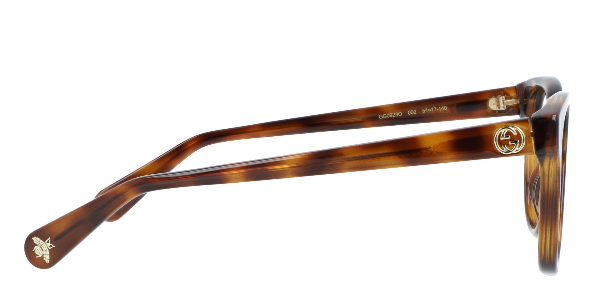 The Gucci GG0923O eyeglasses offer a clean, modern aesthetic with a chic urban vibe. A wingtip inspired shape and sturdy saddle bridge design create a throwback 1950s silhouette, while the Gucci G logo at the temple lends a contemporary look. Full rim frames are crafted from lightweight, high impact acetate that stands up to your busiest activities, with wire core temples for superior comfort. Step out in classic style with these vintage inspired eyeglasses by Gucci.