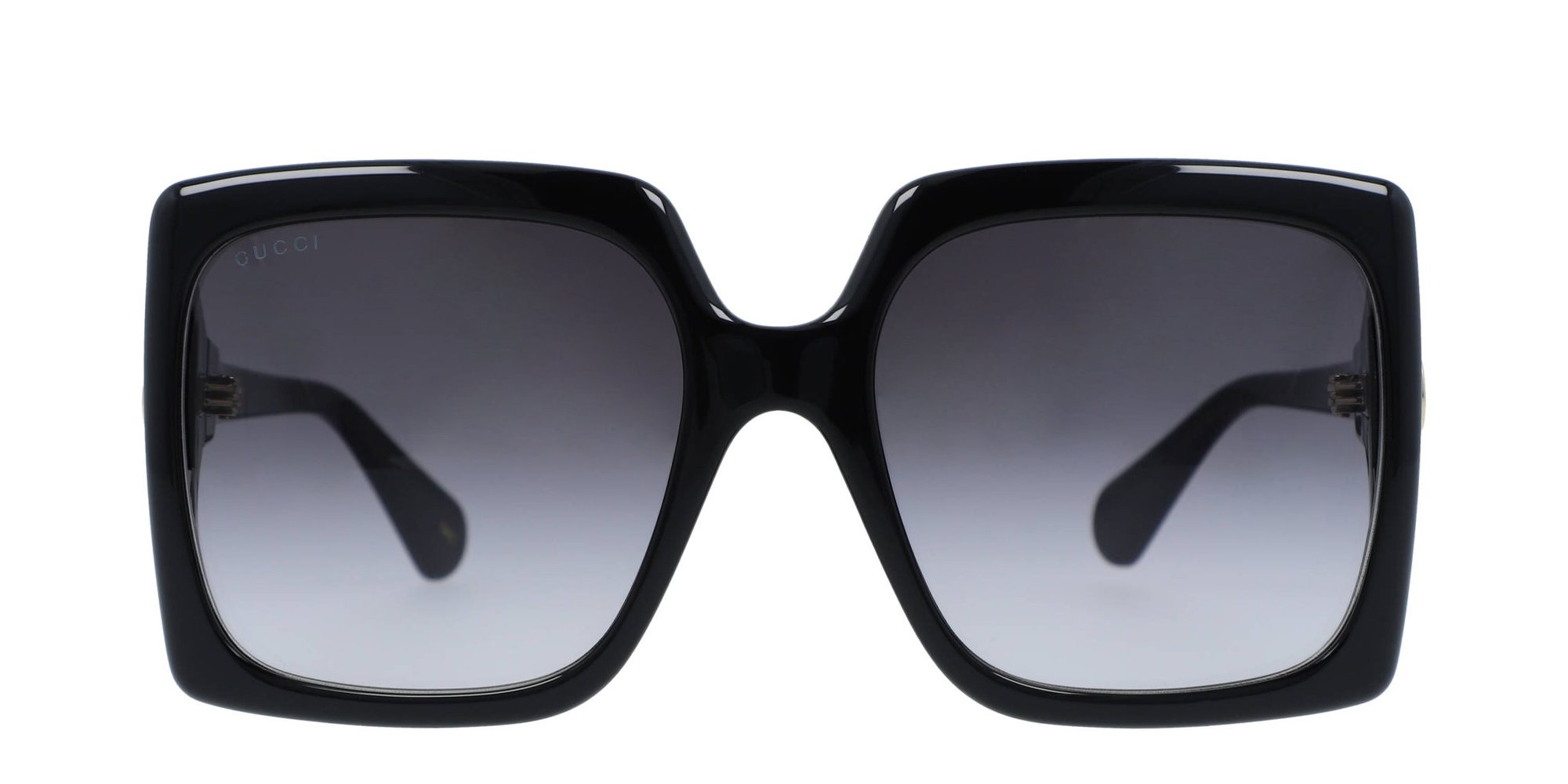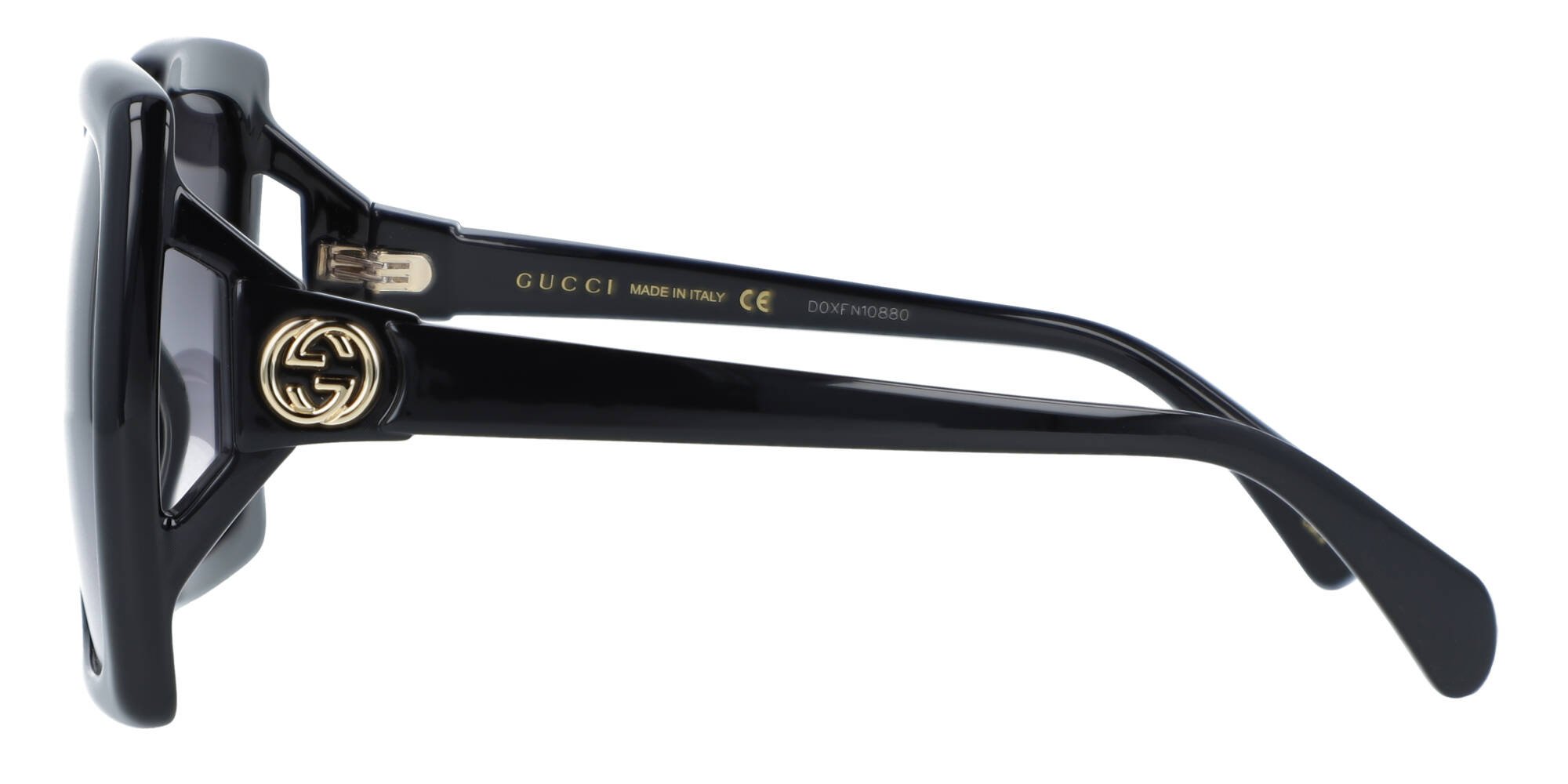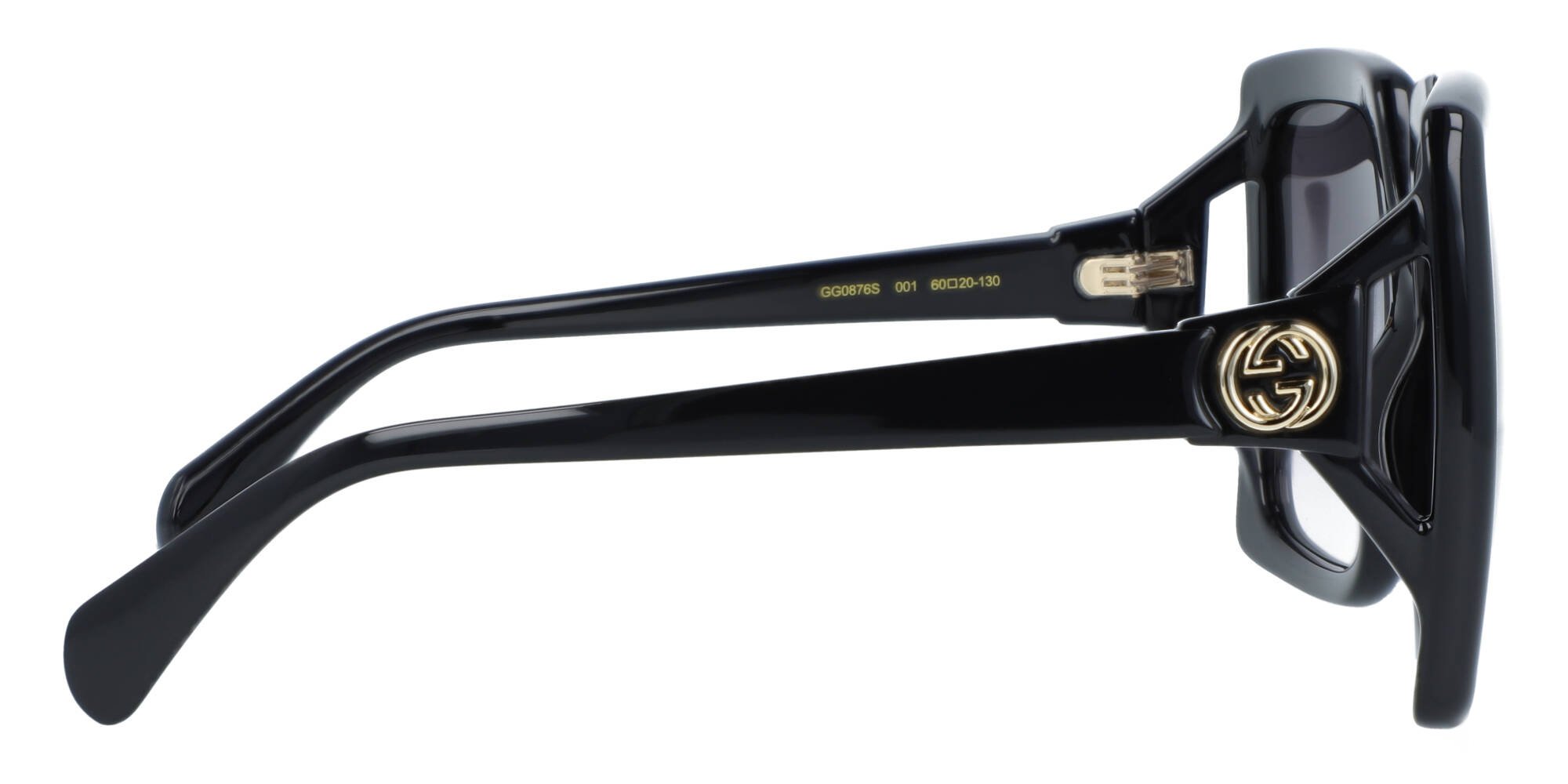 Think outside the box when you choose Gucci GG0876S sunglasses. These thick, square rimmed frames make an eye catching fashion accessory. Gucci crafts the chunky frames in acetate, a versatile and lightweight plastic that’s comfortable to wear, with slightly bent temple tips to secure the fit. Low set temples and a thick saddle bridge add a distinctive look and showcase the familiar interlocking G logo. Make a bold statement wearing the GG0876S, a modern take on a retro sunglasses style.