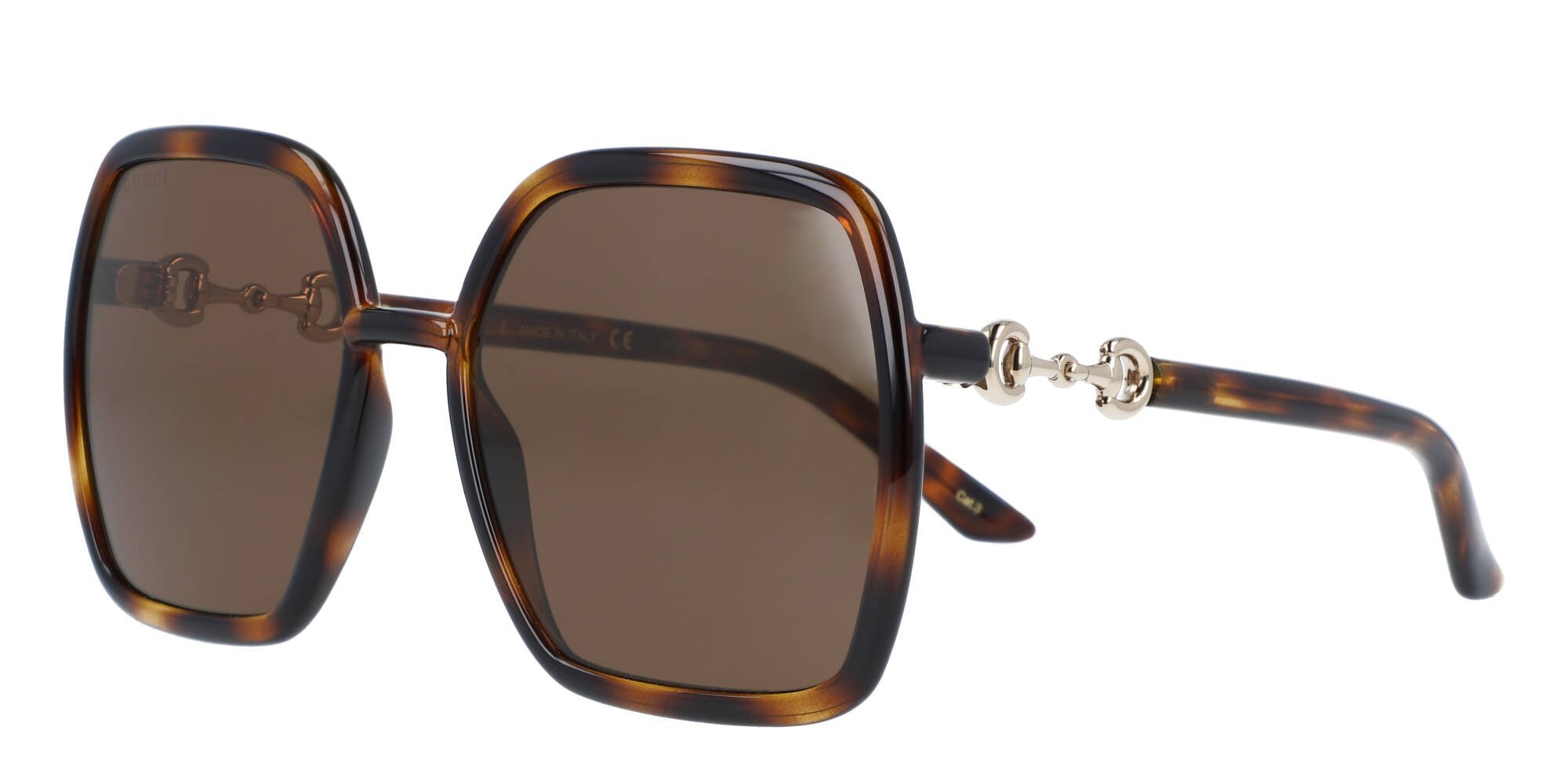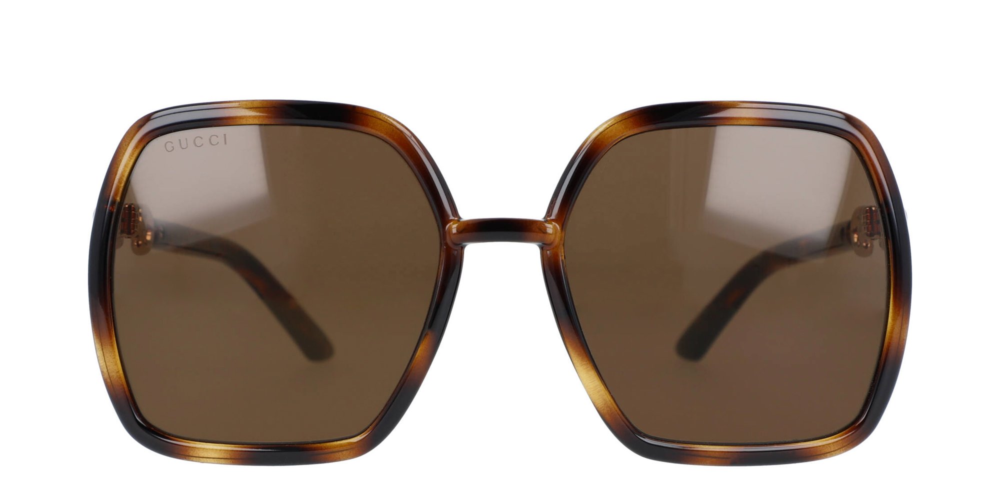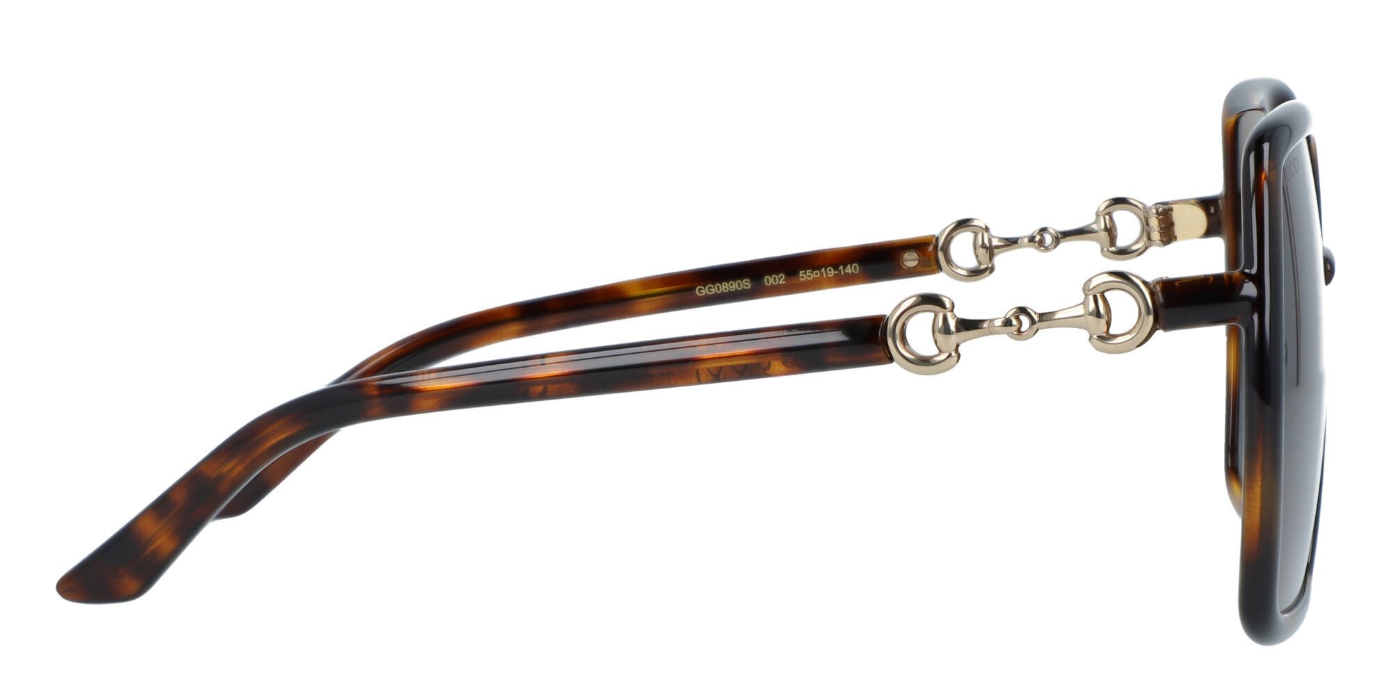 The woman with adventurous style preferences will enjoy wearing the Gucci GG0890S sunglasses. The bold square design features an arching browline for an updated take on the classic butterfly profile. The glossy performance acetate construction boasts the classic interlocking G icon at the hinge for designer shades at once lightweight and durable. The temples taper from the brow end to the ergonomic tips for a secure, comfortable fit behind the ears. Make your mark when you step out in these sunglasses from Gucci.