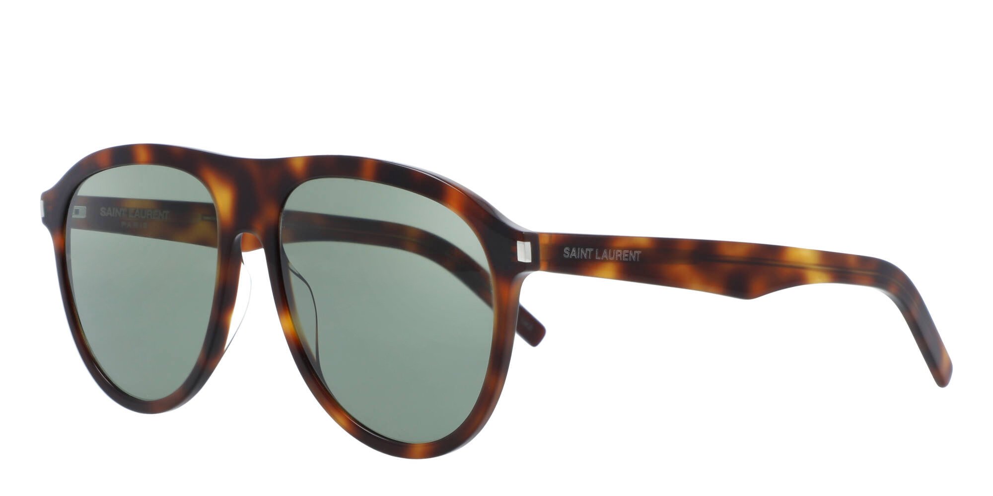 Treat yourself to luxury sunglasses in a timeless design when you reach for the SL 432 SLIM from Saint Laurent. These modern aviator style frames are constructed in lightweight acetate, a plant based plastic eyewear designers prefer for its strength and durability. The temples widen at the tips for grip behind the ears, for a secure fit on active days. The Saint Laurent name near the brow end of the temple represent this widely known designer brand. Make your mark on fashion wearing these SL 432 SLIM sunglasses by Saint Laurent.