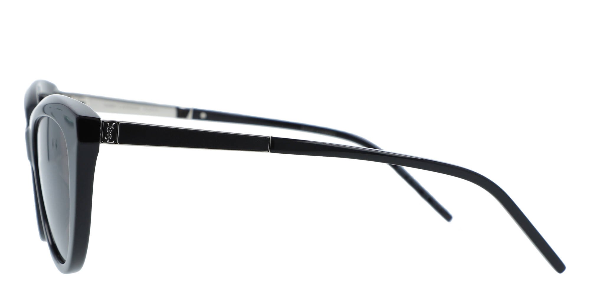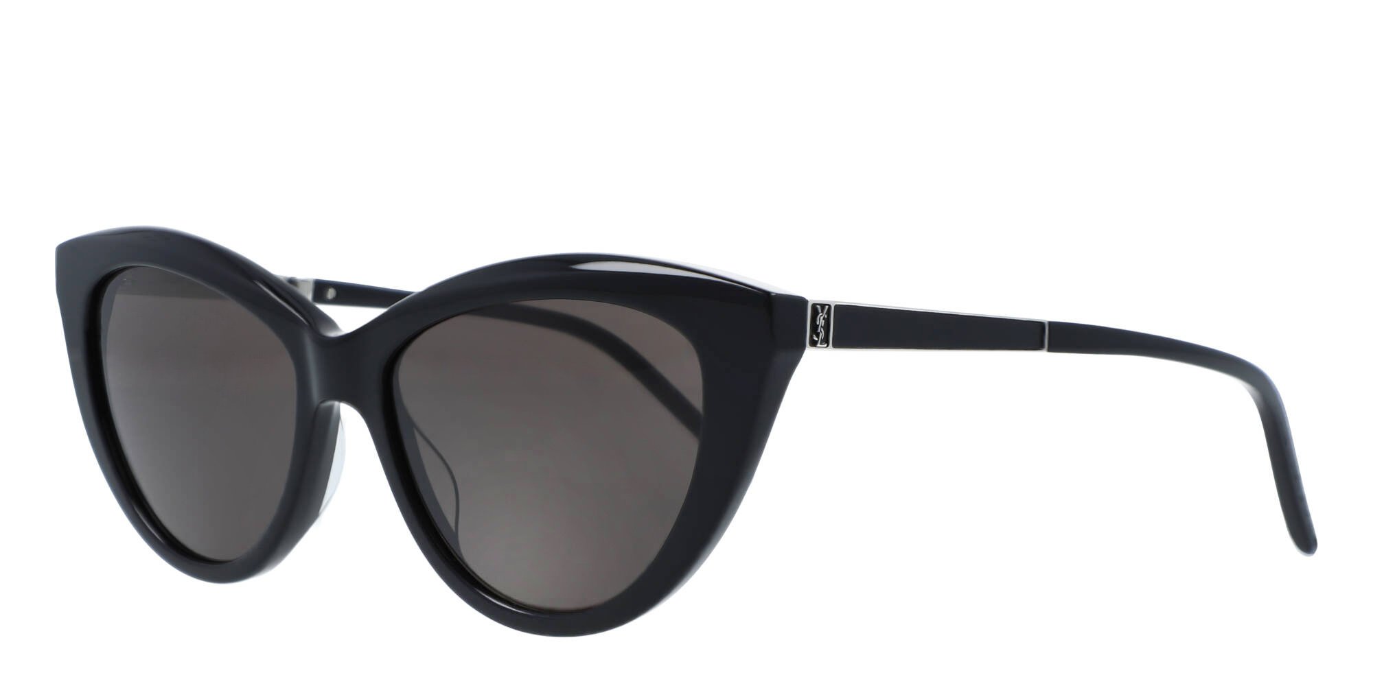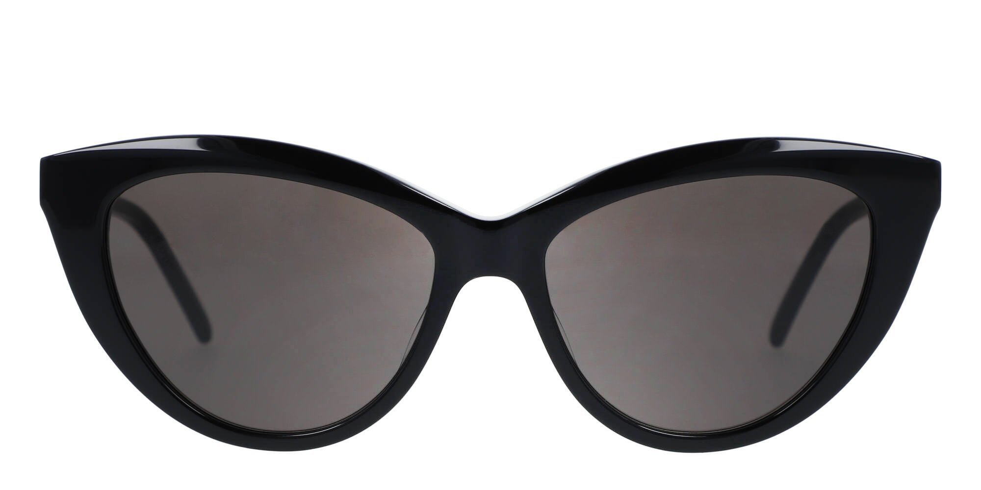 The Saint Laurent SL M81 sunglasses offer a timeless look for the modern woman. The rounded full rim frames feature a supple, curved browline and upswept endpoints for a flirty and classic take on the cat eye profile. The lustrous, hypoallergenic acetate construction features eye catching details at the hinge for a fun yet refined aesthetic. The ergonomic temples contour around the head and feature rounded tips for a secure, comfortable fit. Turn heads in these vintage inspired shades from Saint Laurent.