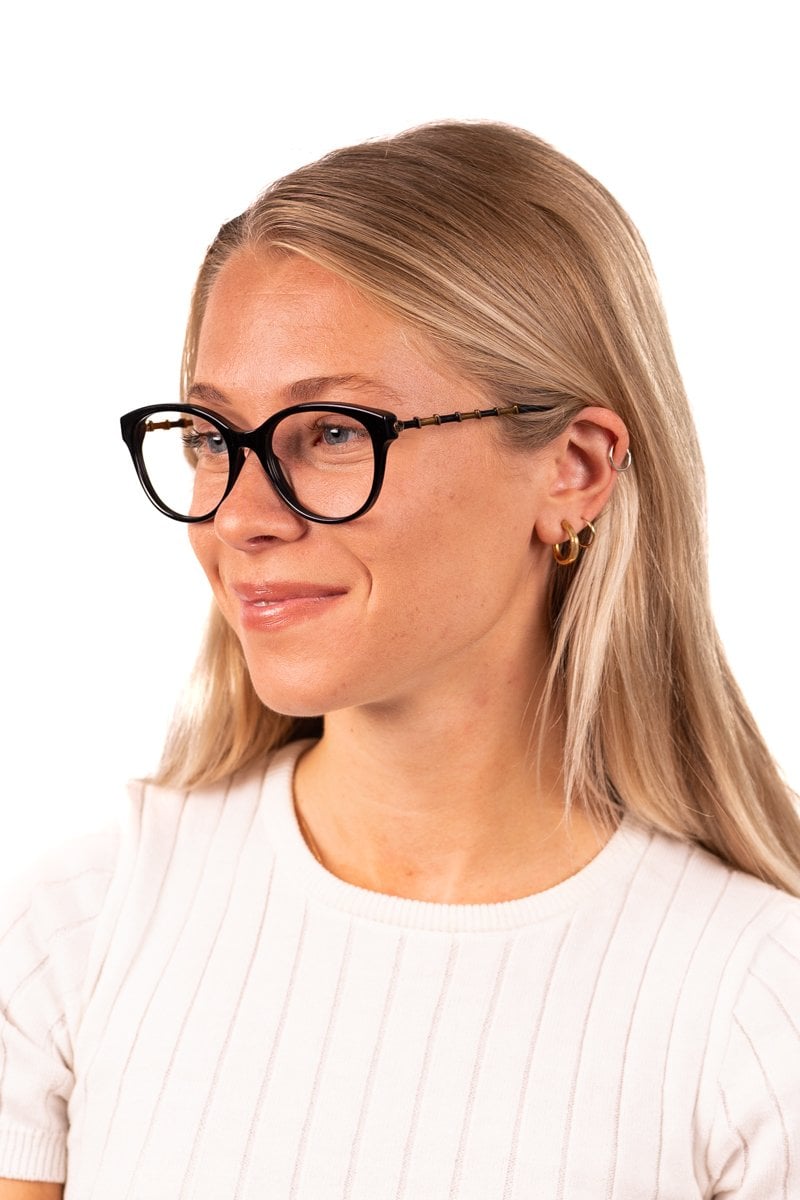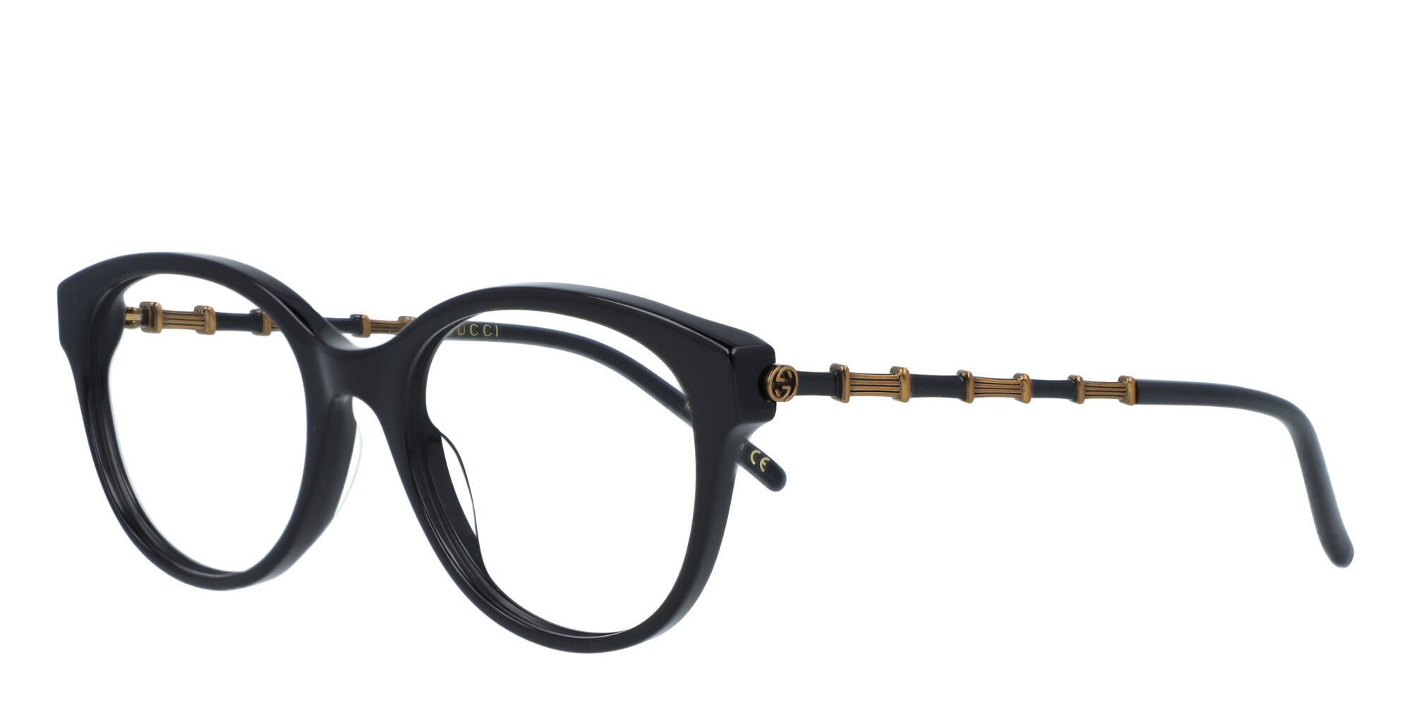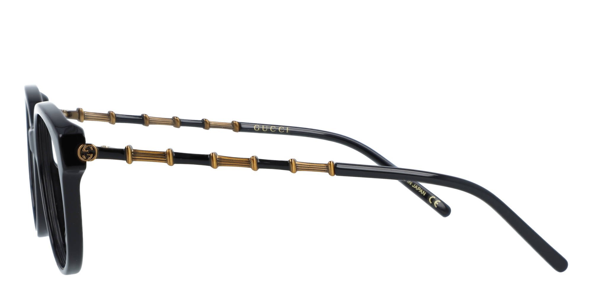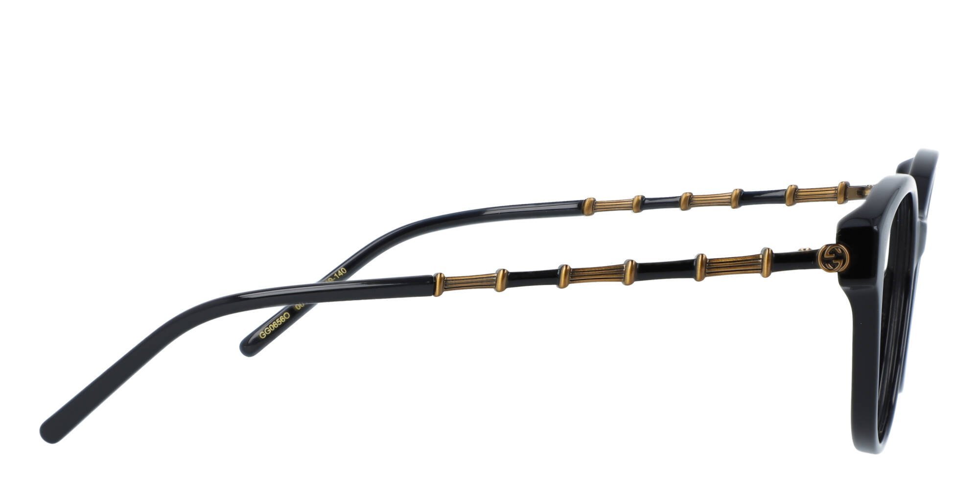 Enjoy a creative new look wearing the Gucci GG0656O eyeglasses. These rounded, full rim frames feature a softly arched browline for a contemporary take on a timeless style. The artistic temples feature an architectural pattern for interest, and the Gucci logo at the hinge adds designer appeal. Crafted in a combination of lightweight metal and hypoallergenic acetate, these authentic Gucci glasses come with acetate coated tips for a secure, comfortable fit behind the ears. Elevate your everyday attire with the GG0656O from Gucci.