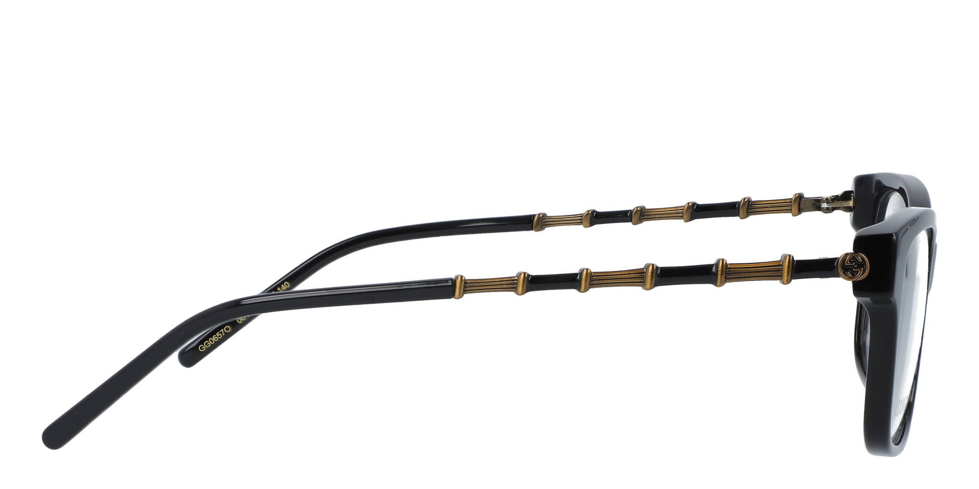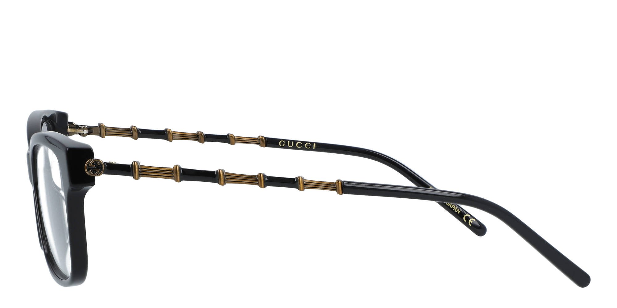 The Gucci GG0657O eyeglasses offer the wearer who covets couture fashion a fresh, new look. With a slightly arched browline and rounded full rims, these rectangular frames will flatter the modern fashionista. The creative temples feature an unusual architectural pattern for multi dimensional appeal, and the interlocking G logo at the hinge adds designer flair. The acetate and metal construction is sturdy, and the easy to repair conventional hinges are durable. Experience luxurious comfort paired with signature style wearing these Gucci eyeglasses.