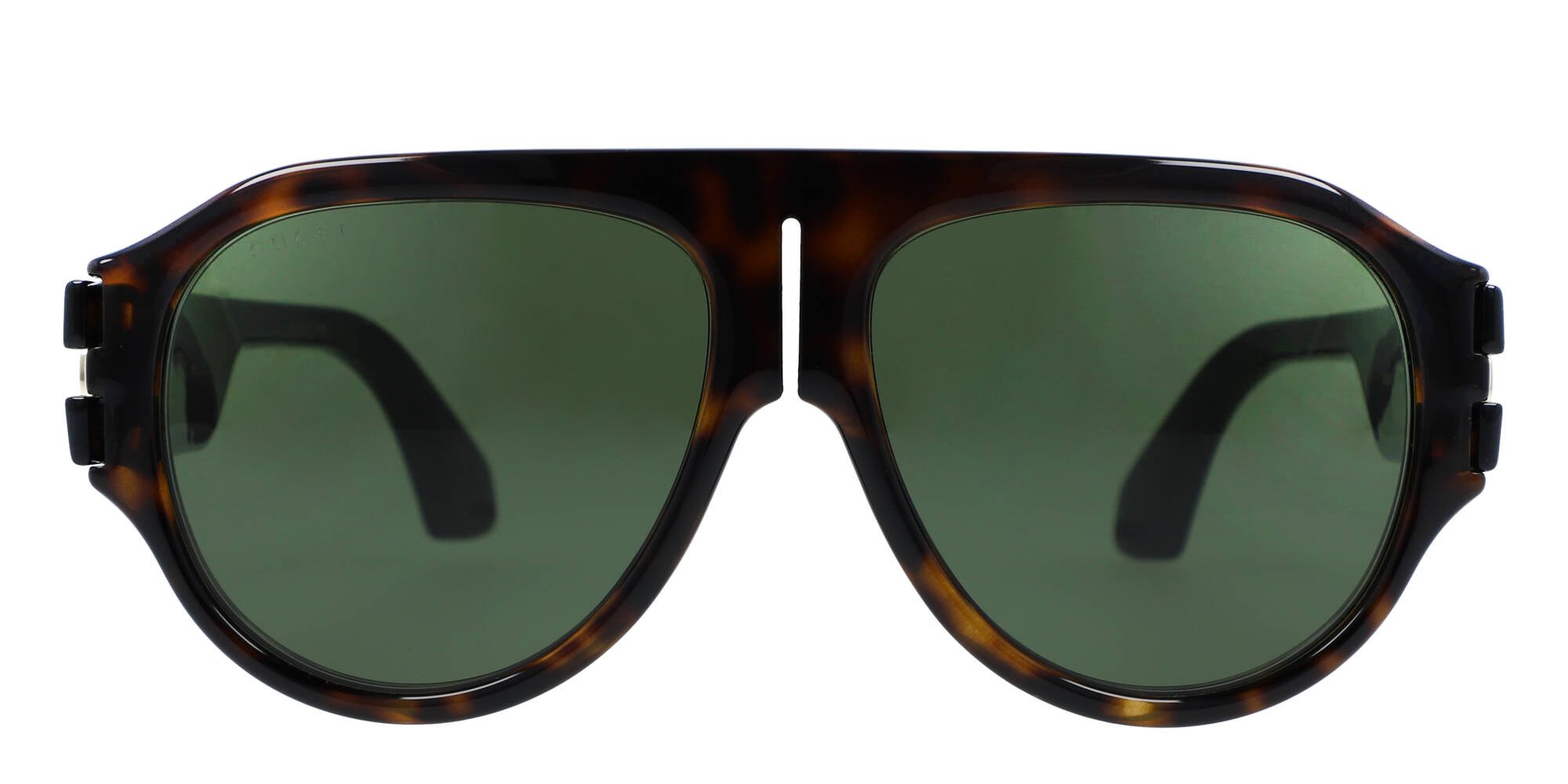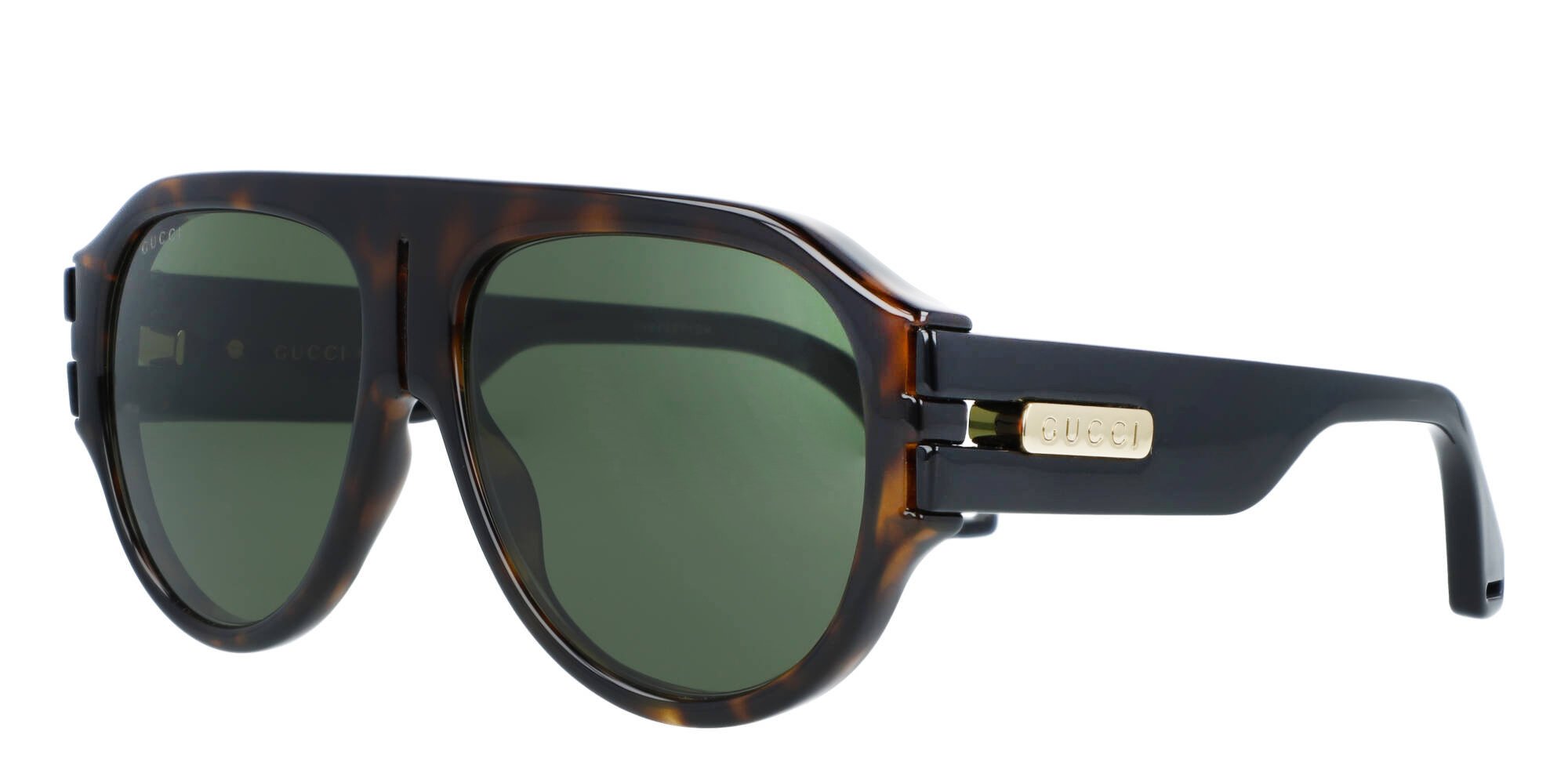 Treat yourself to luxury sunglasses in a timeless design when you reach for the GG0665S from Gucci. These modern aviator style frames are constructed in lightweight acetate, a plant based plastic eyewear designers prefer for its strength and durability. The temples widen at the tips for grip behind the ears, for a secure fit on active days. The Gucci name near the brow end of the temple represents this widely known designer brand. Make your mark on fashion wearing these GG0665S sunglasses by Gucci.