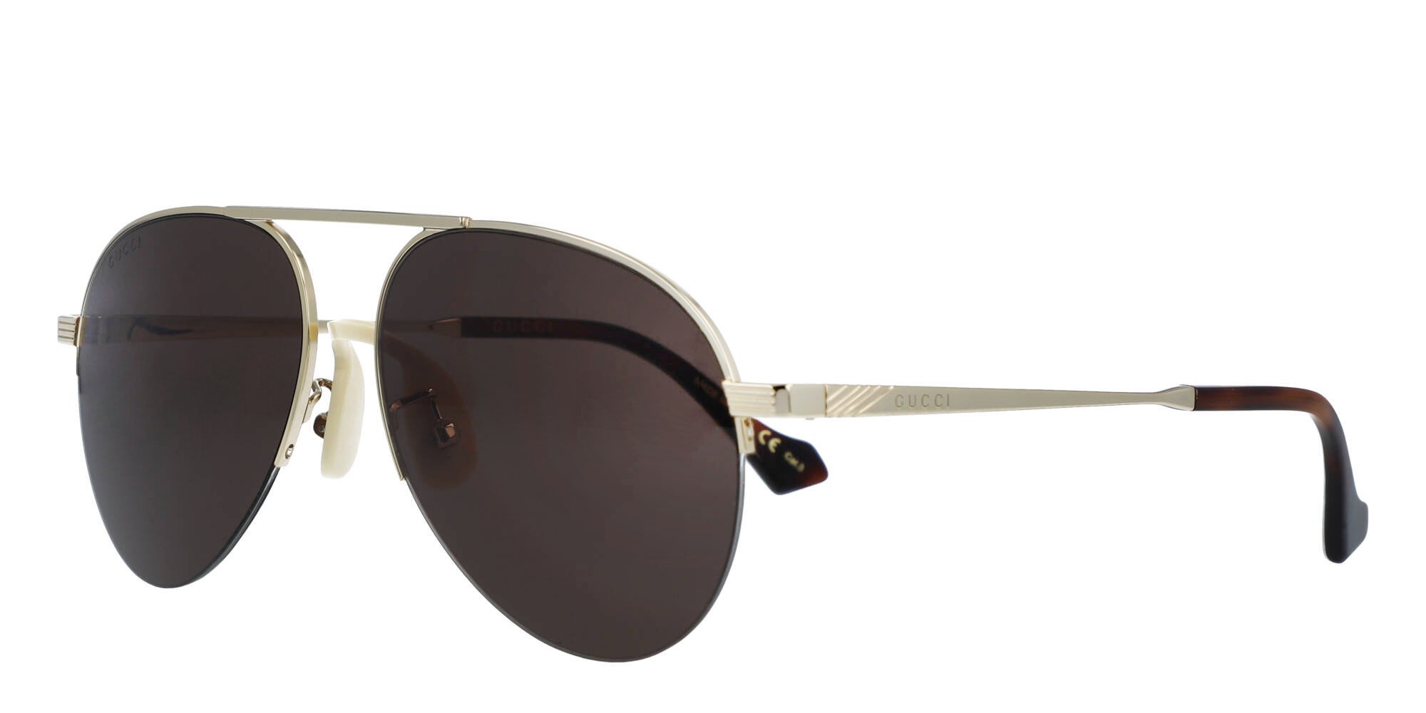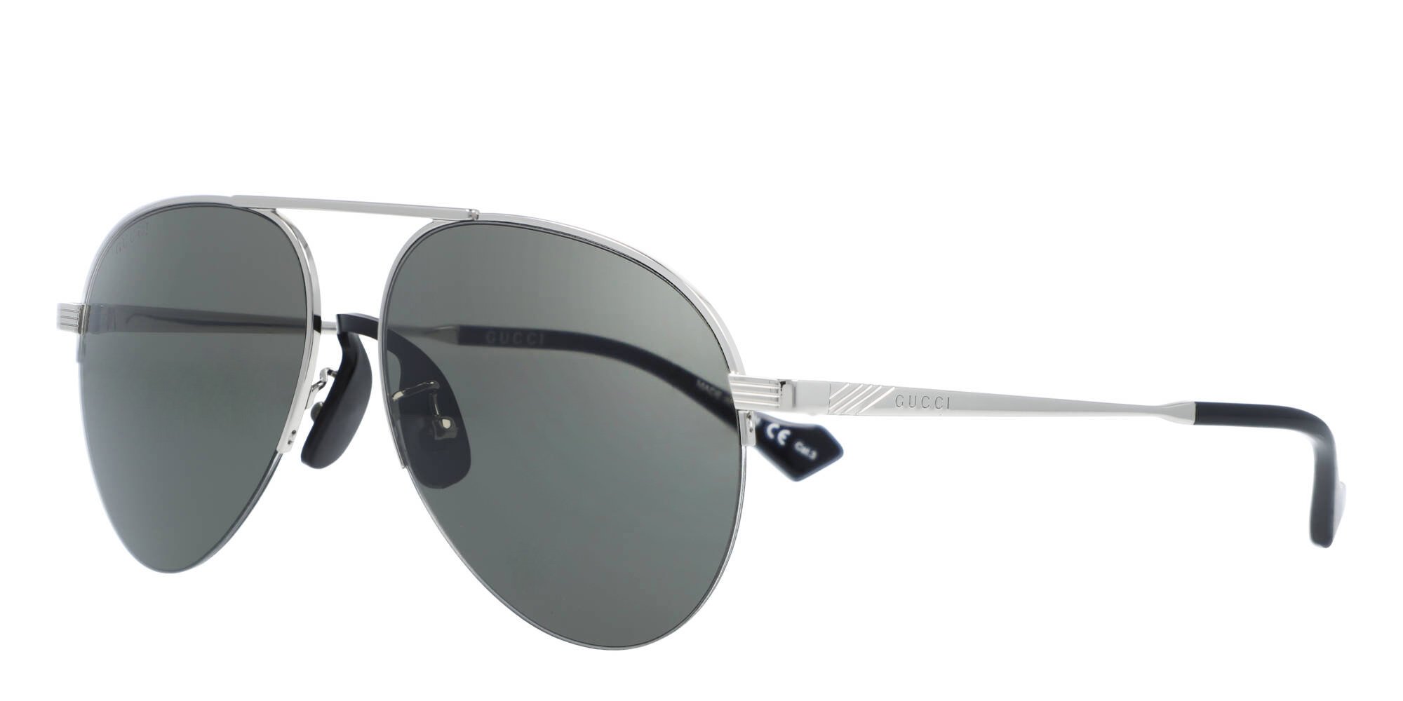 For maximum style, choose the Gucci GG0742S sunglasses for men. The head turning shades represent this Italian maker's distinctive take on the classic aviator silhouette. Everyone with an eye for style will appreciate the teardrop lenses, dramatically tapered upper bridge, and boldly oversized silhouette; signature Gucci panache and an eye for detail never fail to impress. Gucci branding at the temple draws attention to your designer tastes.