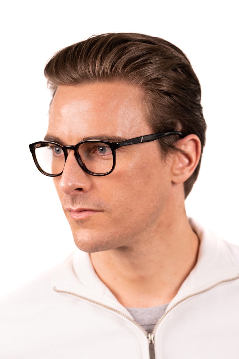 Diesel combines timeless design and modern aesthetics in these distinctive DL5237 eyeglasses. Bold, full rim frames are crafted from lightweight acetate thats comfortable, yet durable enough to take on your most active endeavors. The keyhole bridge brings a vintage aesthetic and distributes weight evenly, ideal for the wearer with a wide nose. And the Diesel logo at the brow end adds a touch of elegance. Show your individuality and commitment to quality when you wear these DL5237 glasses by Diesel.