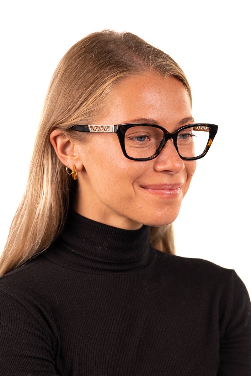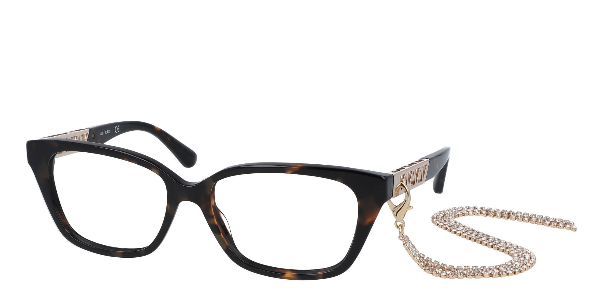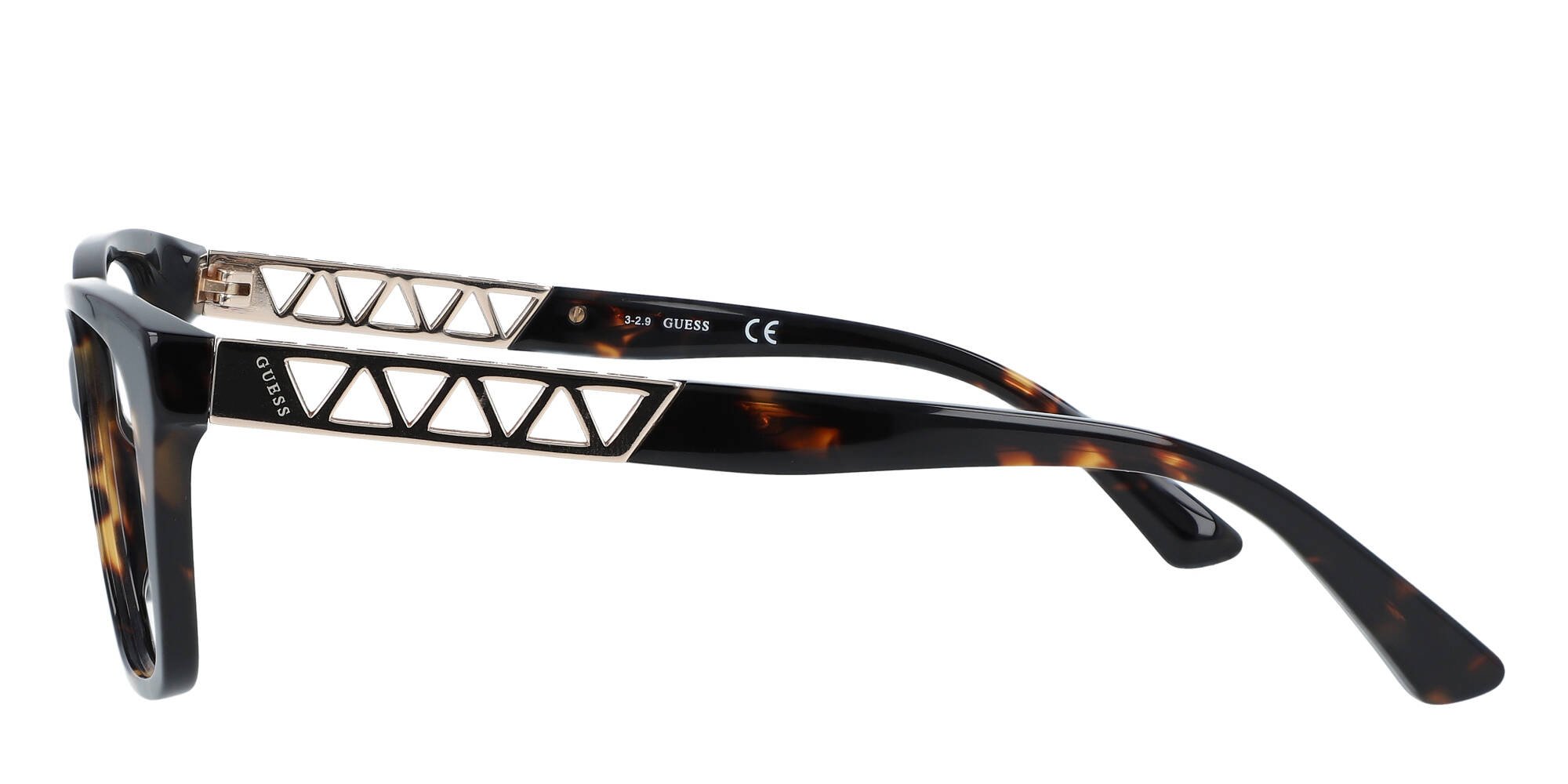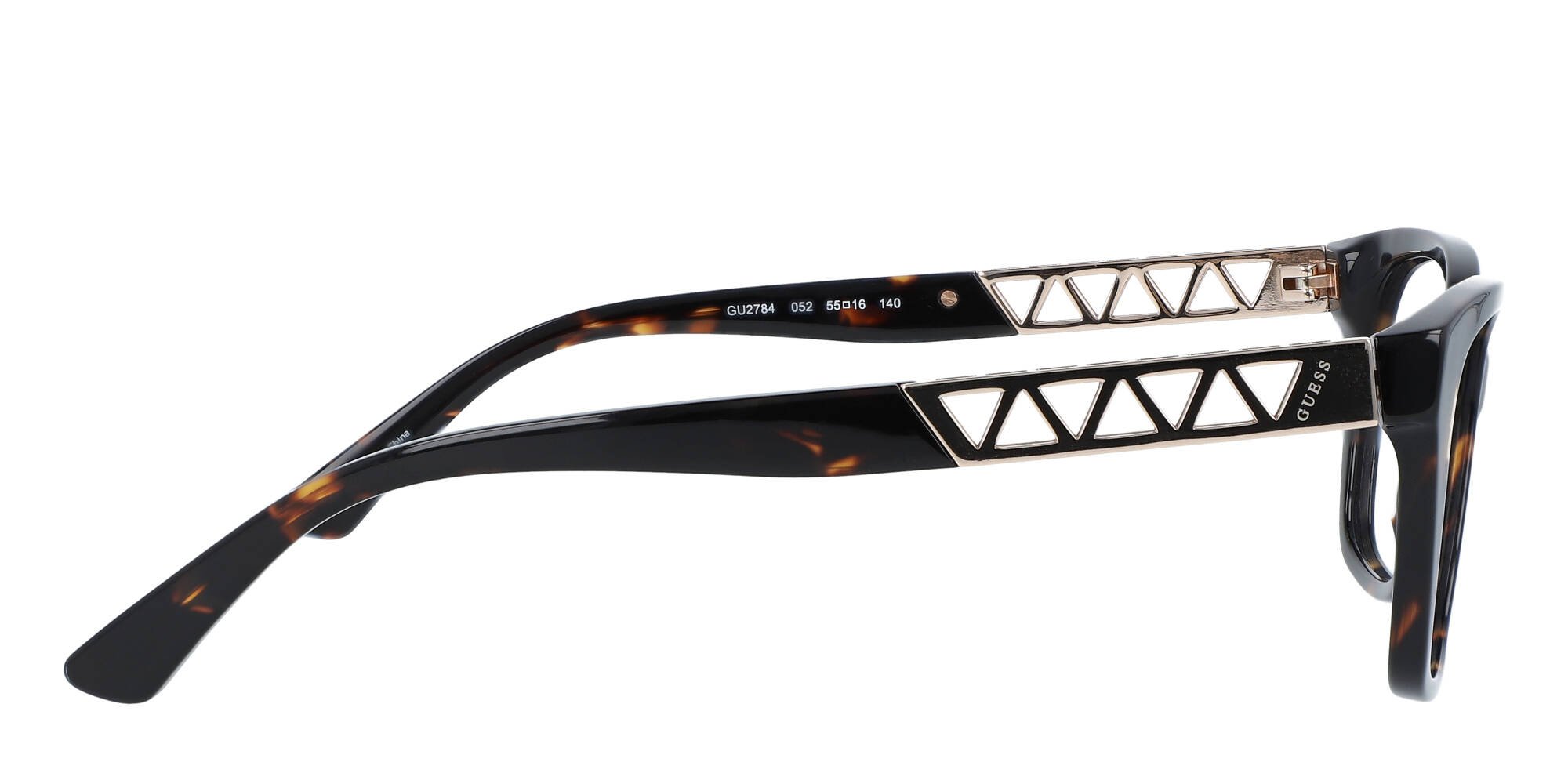 Take your everyday wardrobe to the next level wearing the GUESS GU2784 eyeglasses. These are no ordinary rectangles: The softly arched browline and pronounced, squared off endpoints add dimension to the classic style. The GUESS logo and repeating openwork pattern of signature triangular icons at the temples impart designer . The GU2784 glasses from GUESS boast a lightweight metal and performance acetate construction for comfort and durability.