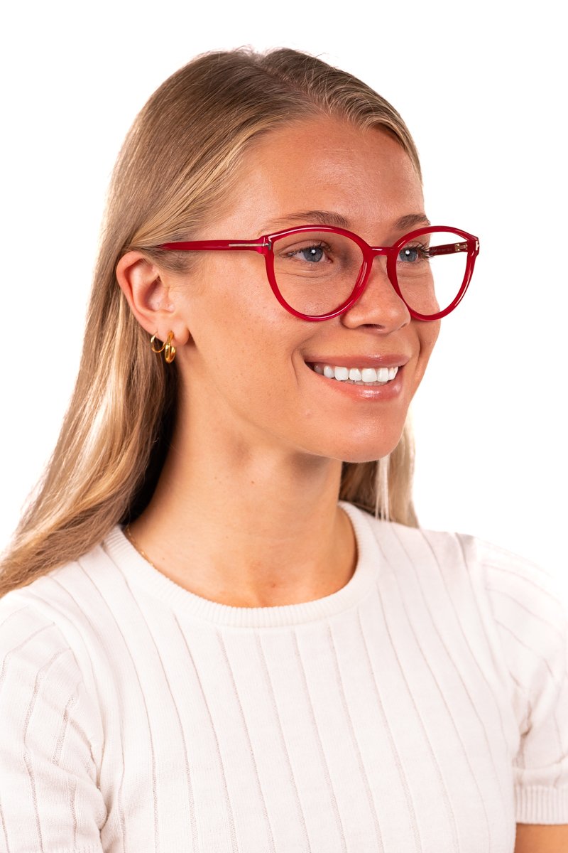 The Tom Ford FT5706 eyeglasses promise a classic look for the woman with refined tastes. With an arching browline and rounded full rims, these cat eye frames add vintage inspired appeal to any wardrobe. Tom Ford's signature T features prominently on the wirecore temples for designer flair, and the ergonomic temple tips promise a secure fit. The lightweight acetate construction is durable and hypoallergenic for long years of comfortable wear, and the easy to repair conventional hinges are sturdy. Showcase your preference for couture eyewear in these designer eyeglasses from Tom Ford.