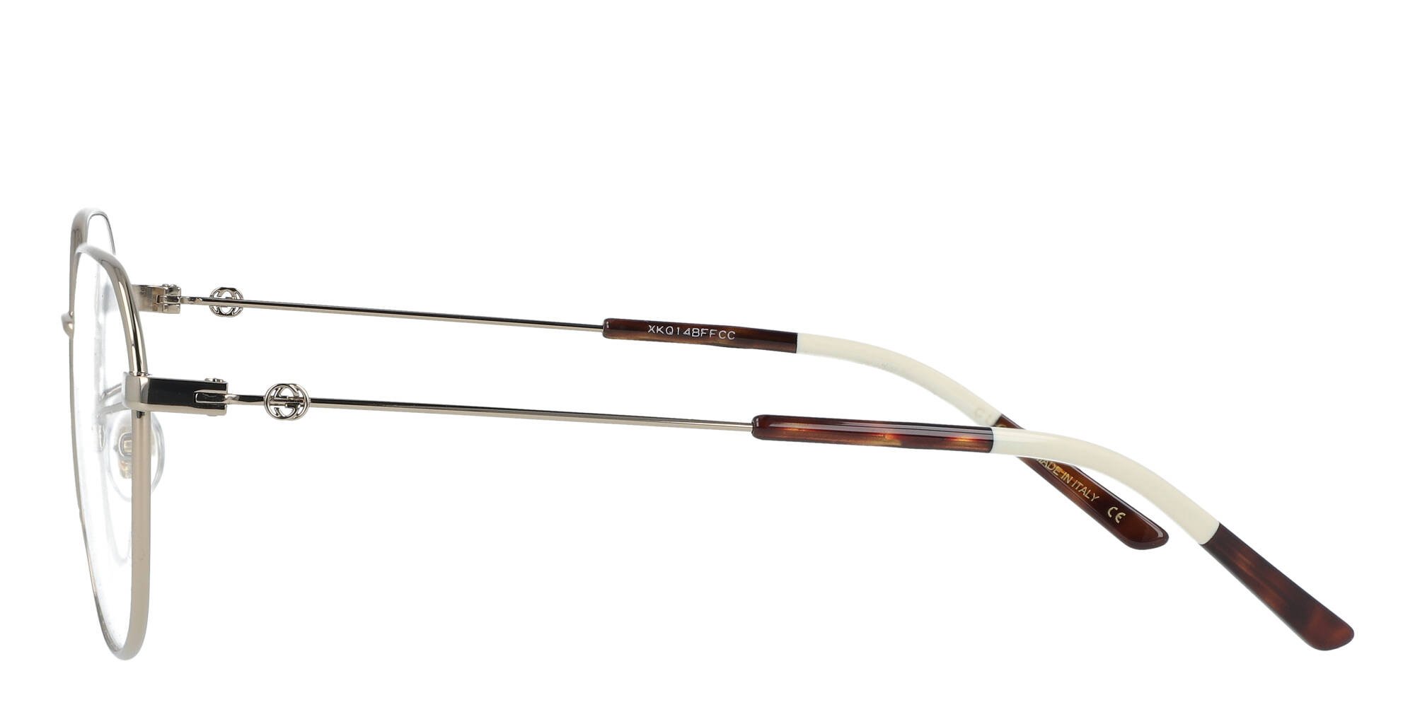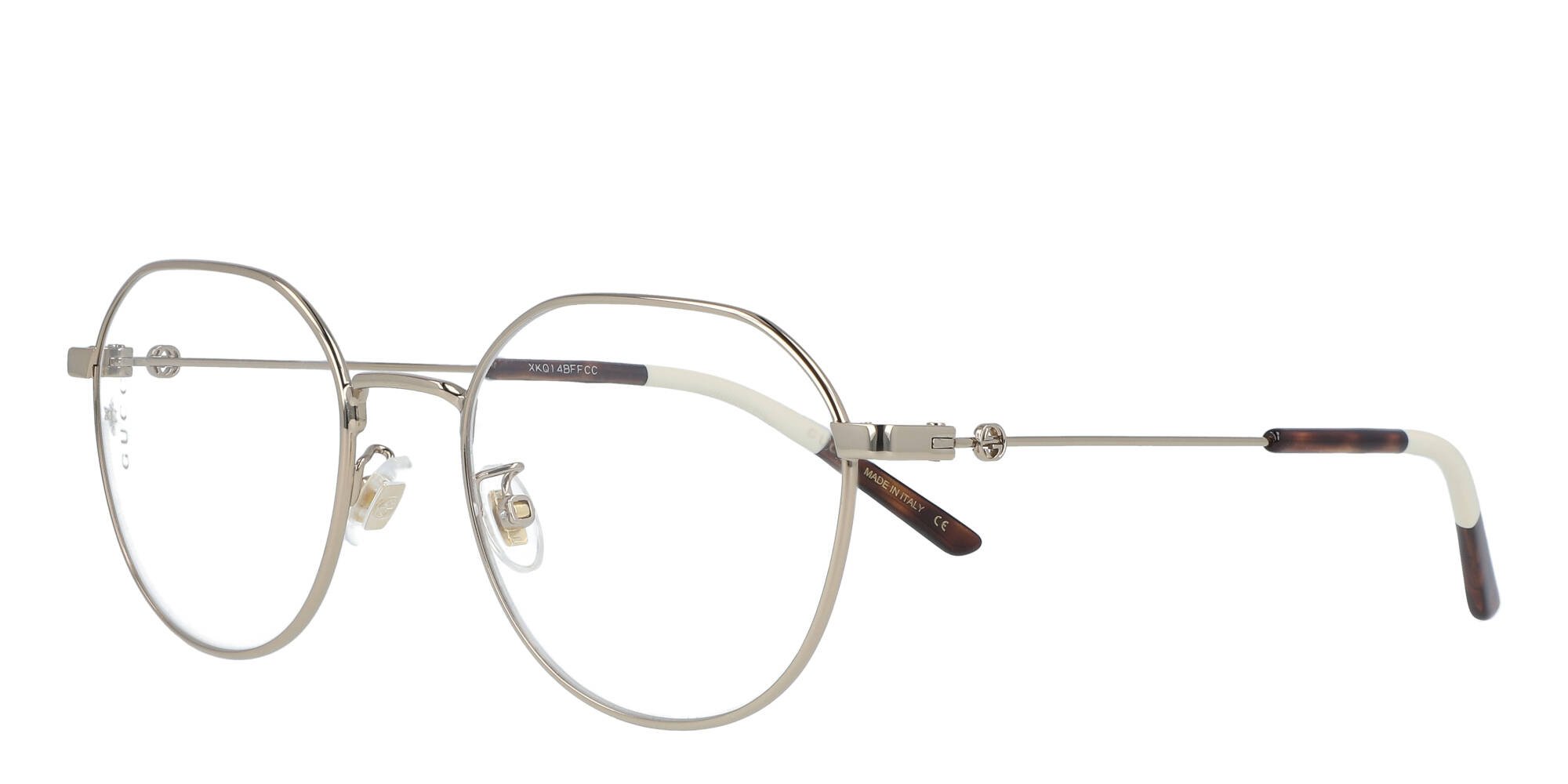 Gucci captures the essence of classic design and contemporary style in these distinctive GG0684O eyeglasses for men. The round silhouette is vintage inspired, and Gucci interprets and elevates that look with panache. The metal rims are thin, sleek, and lightweight. The slim temples feature an unusual visual detail, a silhouette that accommodates, and draws subtle attention to, the Gucci name. For high fashion in retro meets modern style, reach for these round glasses from Gucci.