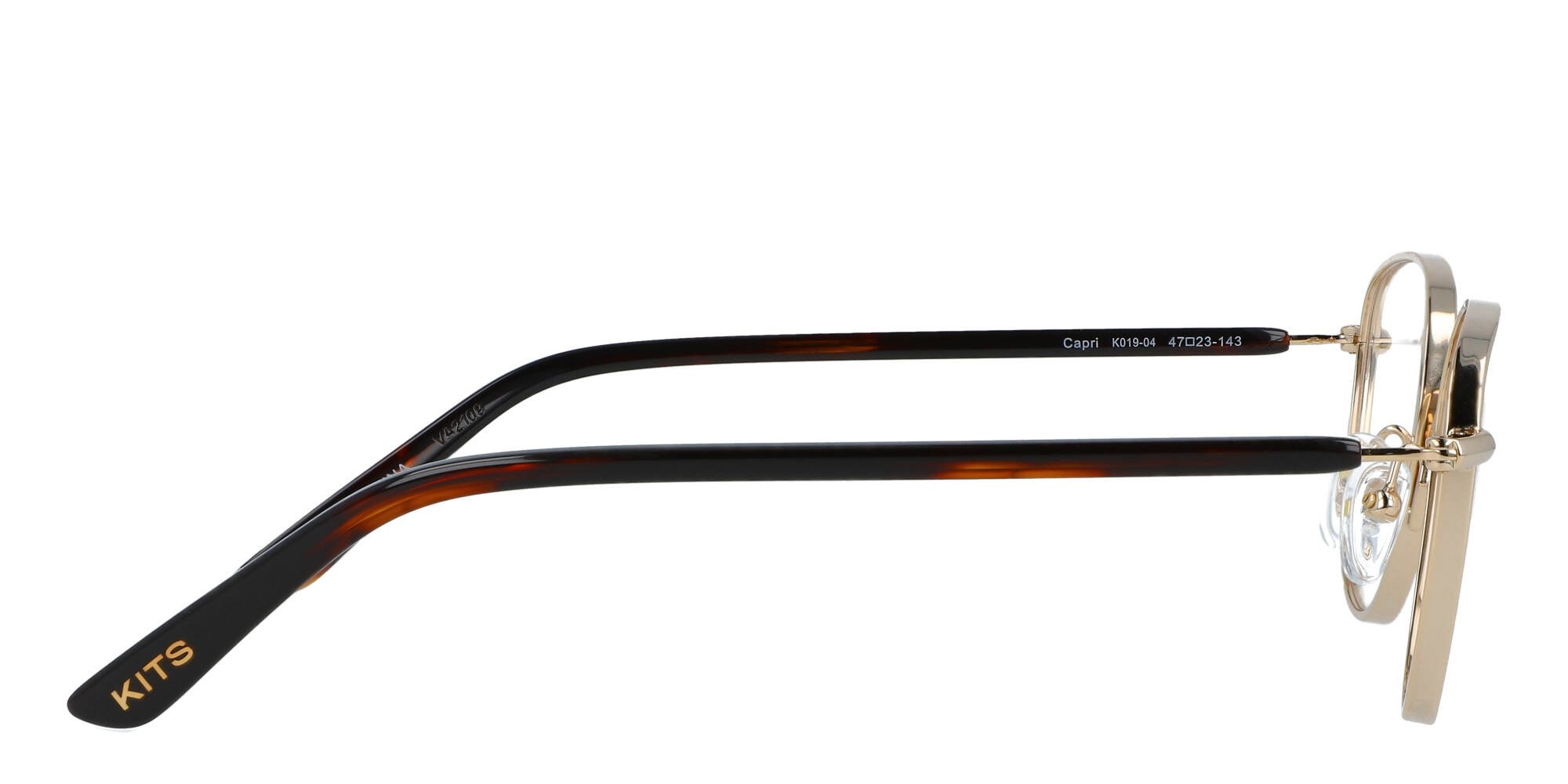 The Capri eyeglasses from Kits speak to the fashion savvy wearer who appreciates classic design with a modern flair. The full rim frames are made in a lightweight, corrosion resistant metal, and feature slightly rounded rims, resulting in a unique, head turning geometric shape. Comfortable temple socks are wider at the tips for added stability. Enjoy uncompromising quality and style wearing the Capri eyeglasses from Kits.