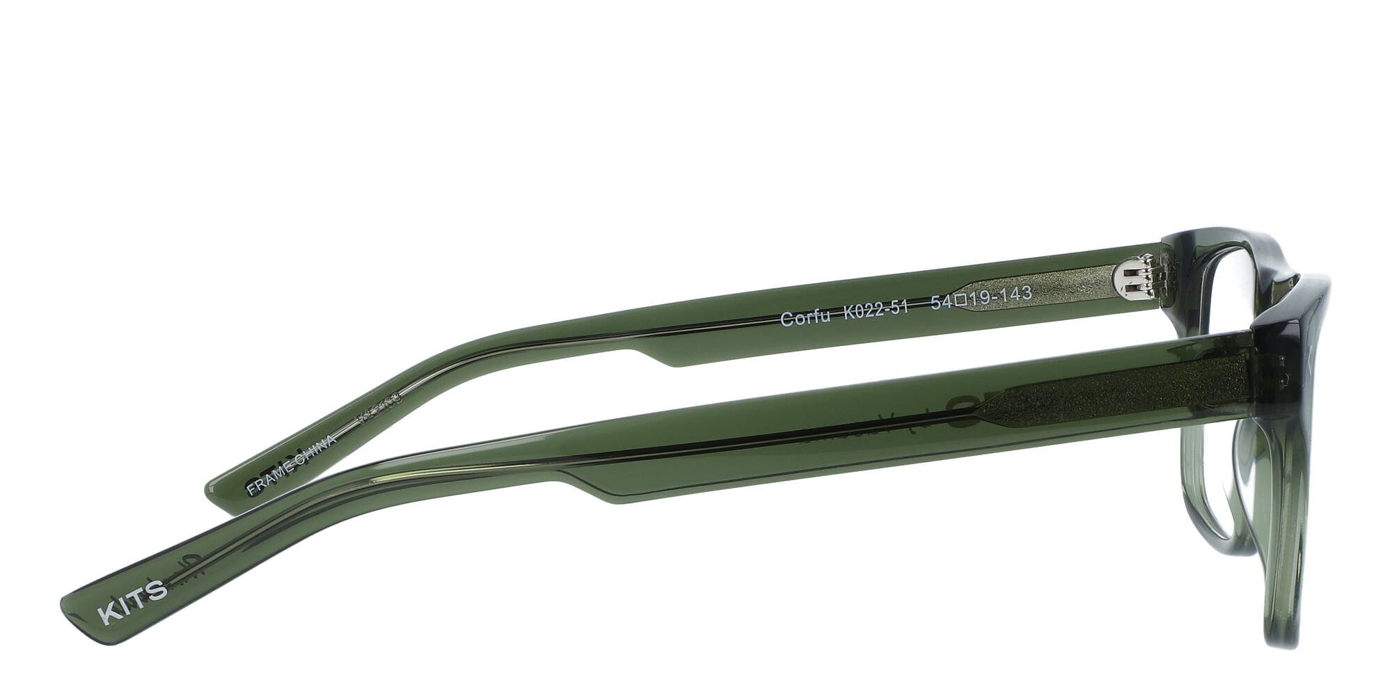 Kits offers vintage styling with contemporary details in the Corfu eyeglasses. The square, full rim frame is made in sturdy acetate thats lightweight and hypoallergenic. A saddle bridge distributes weight evenly across the face to reduce pressure for a comfortable feel. The sleek wire core temples are molded over the ears, and feature signature branding near the brow end for added appeal. Enjoy a little old school nostalgia when you reach for the Corfu glasses from Kits. Please note these frames fit large and are best suited to those with wider faces.