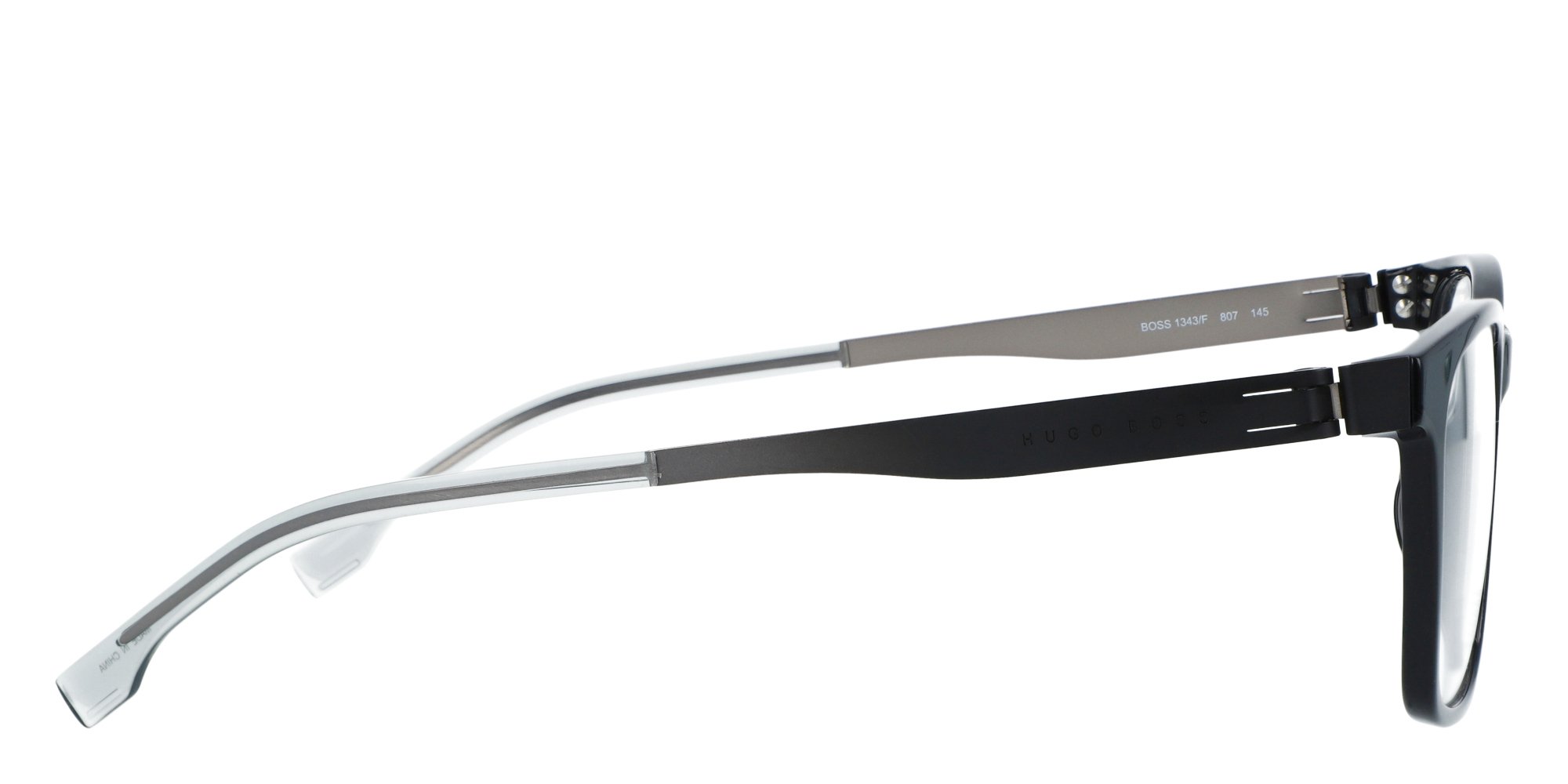 Some of BOSSs most popular, elegant styles are echoed in the BOSS 1342/F eyeglasses, designed for customers with contemporary, essential style. The square shape of the metal front comes together with the innovative screwless hinges, with lines so clean they almost disappear into the metal temples. The result is an evergreen frame where comfort is in sharp focus thanks to adjustable end tips covered in plastic.