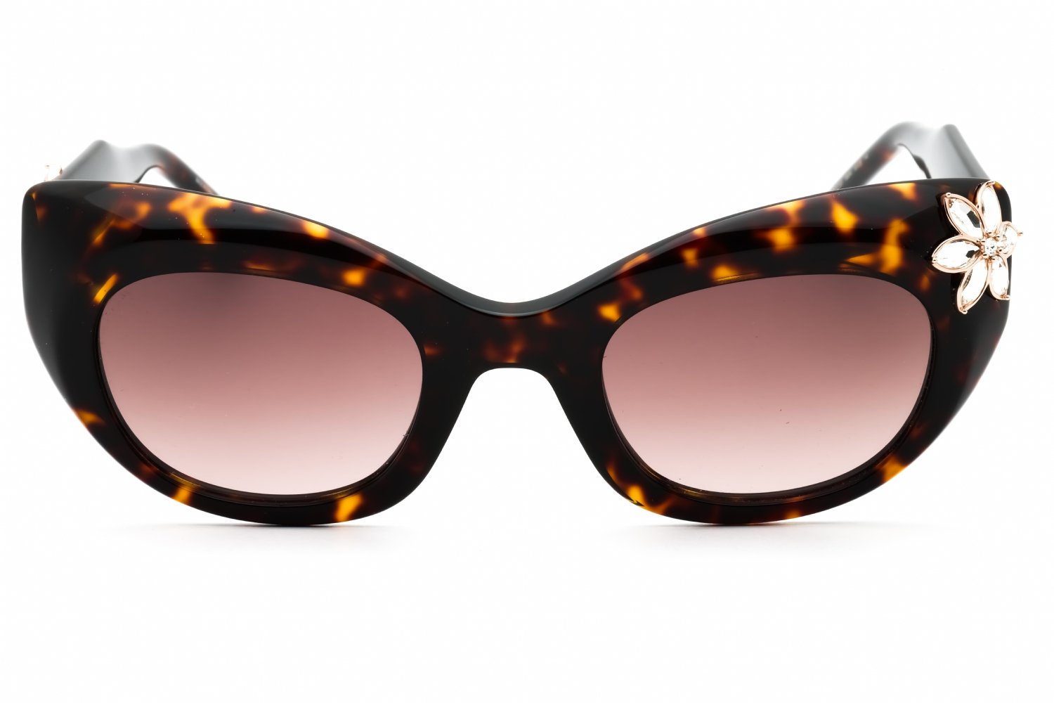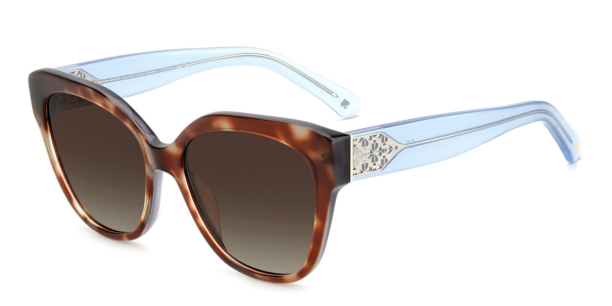 The fashion fearless woman will enjoy wearing the Kate Spade Philippa/G/S sunglasses. These retro chic cat eye frames boast lifted endpoints and a softly curved browline for full rim shades with character and appeal. The translucent temples feature an intricate repeating pattern on the corrosion resistant metal cores, and the rounded tips promise a secure fit behind the ears. The sturdy conventional hinges are easy to repair for added durability. Satisfy your inner fashionista wearing the Philippa sunglasses from Kate Spade.