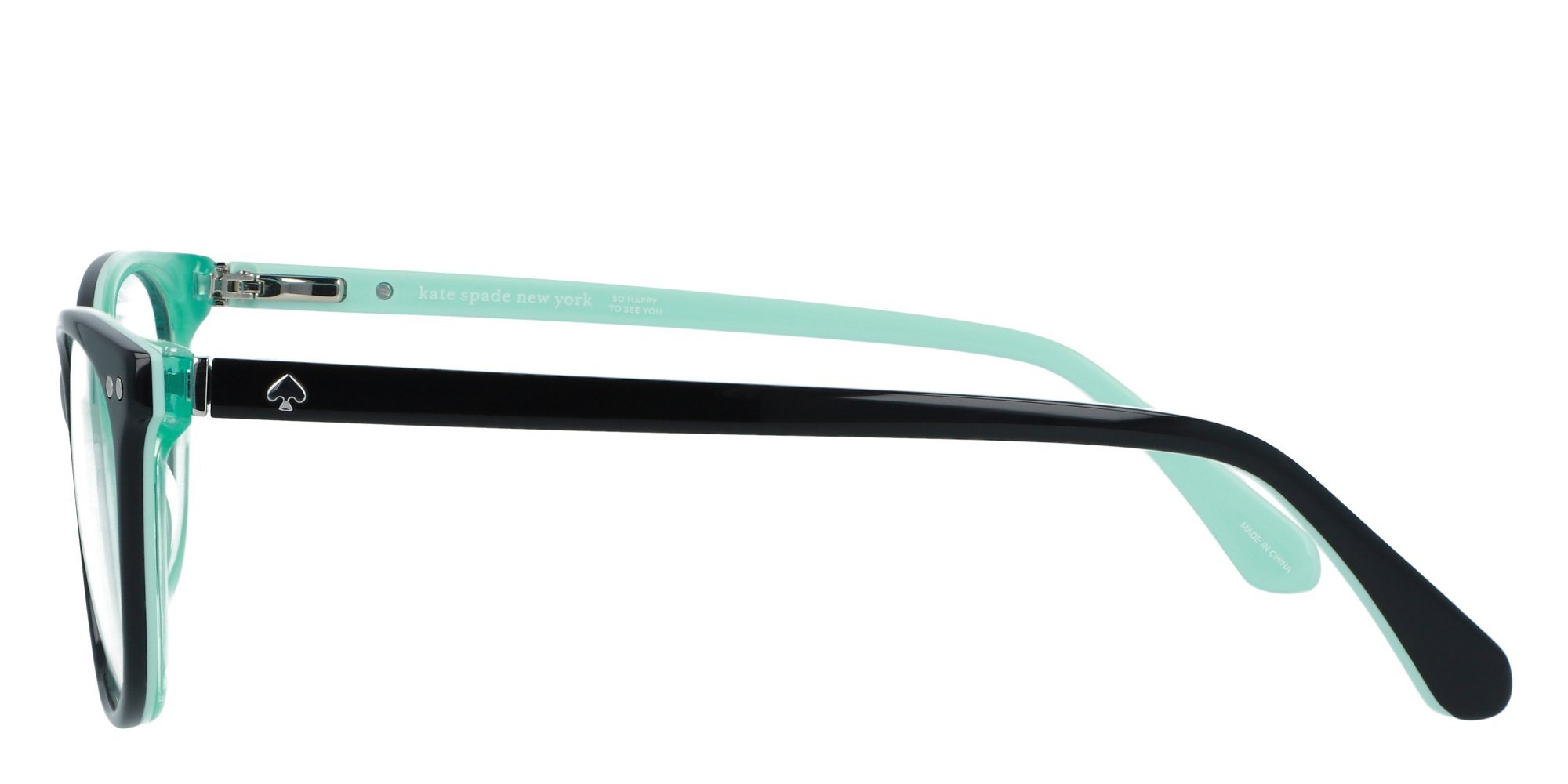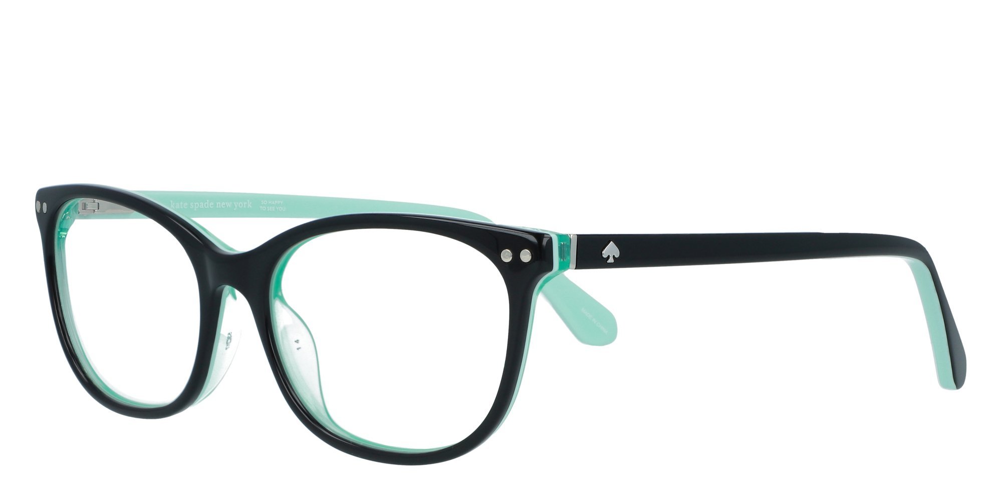 The Kate Spade RAELYNN eyeglasses reflect the fresh, vivacious style of the women who wear them. Defined by exquisitely feminine shapes and palettes in line with the seasons trends, the glimmer of two round rivets on the frame front and an iconic metal logo accent the overall look. Adjustable end tips ensure the acetate temples are extra comfortable, for an impeccable fit, no matter what.