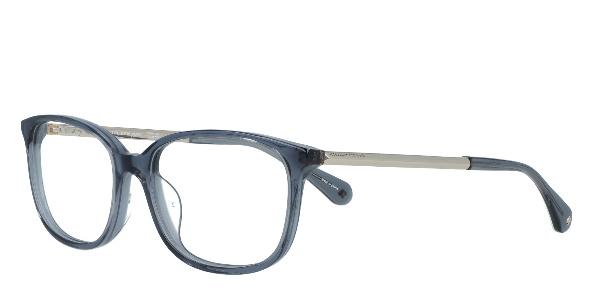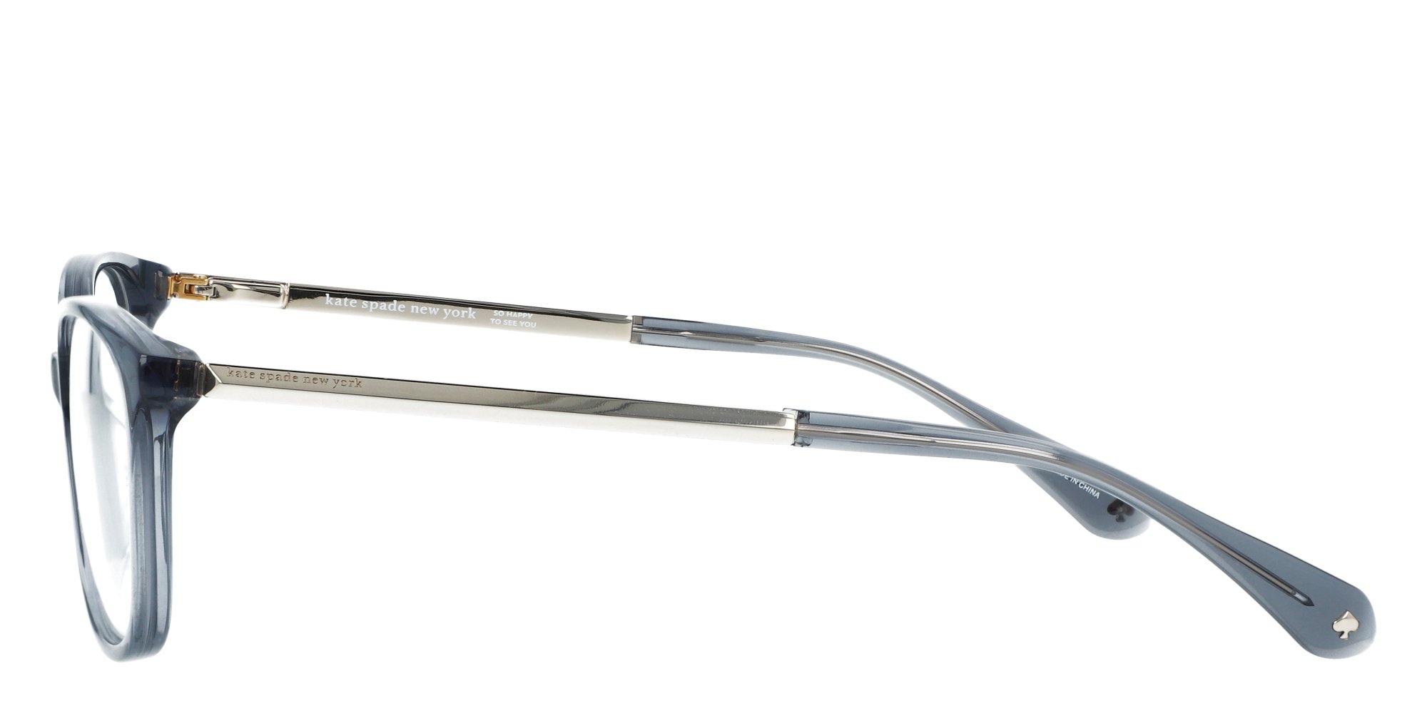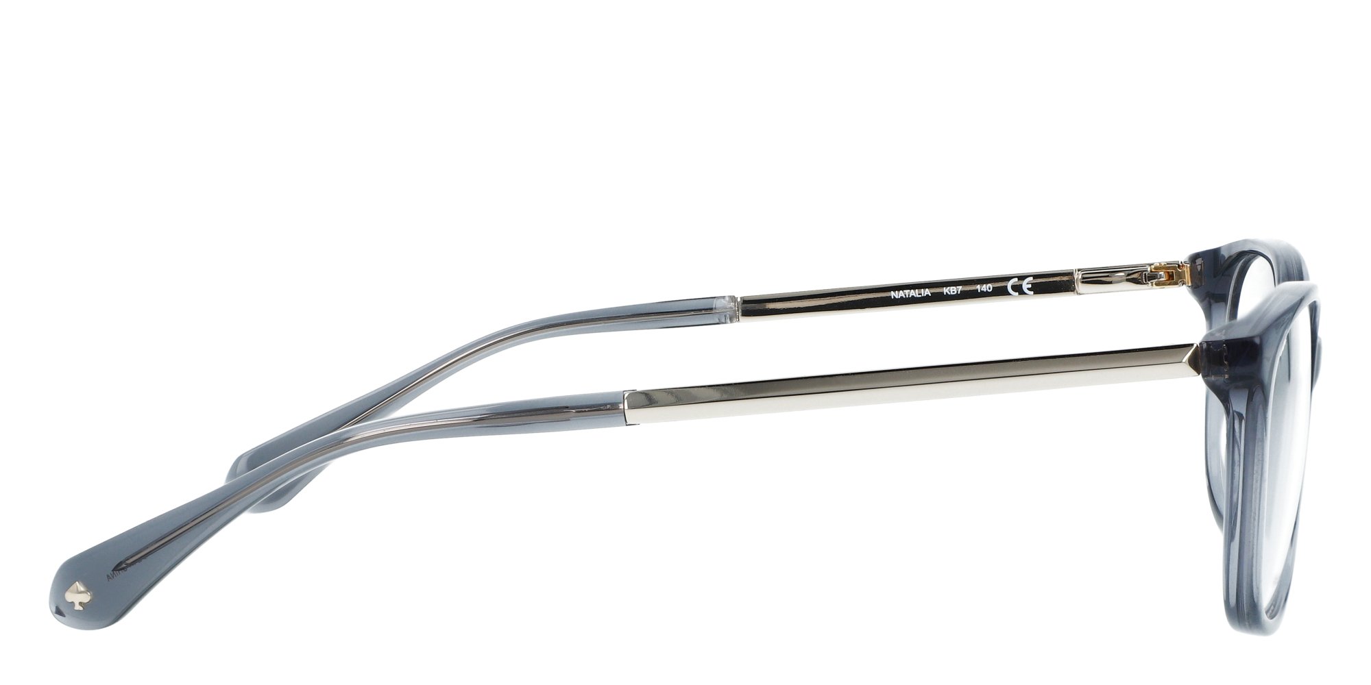 Fresh details and delightful nuances define the Kate Spade NATALIA eyeglasses, perfect for women who adore elegant designs with unique character. The metal temples, accented by the brands signature, feature the three dimensional pyramid shape seen on Kate Spade jewelry and accessories this season. As a chic, peek a boo detail, a jacquard pattern covers the inside of the end tips.