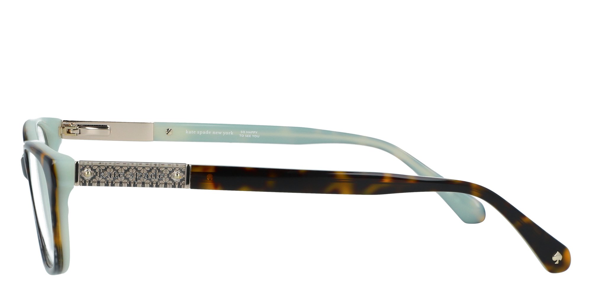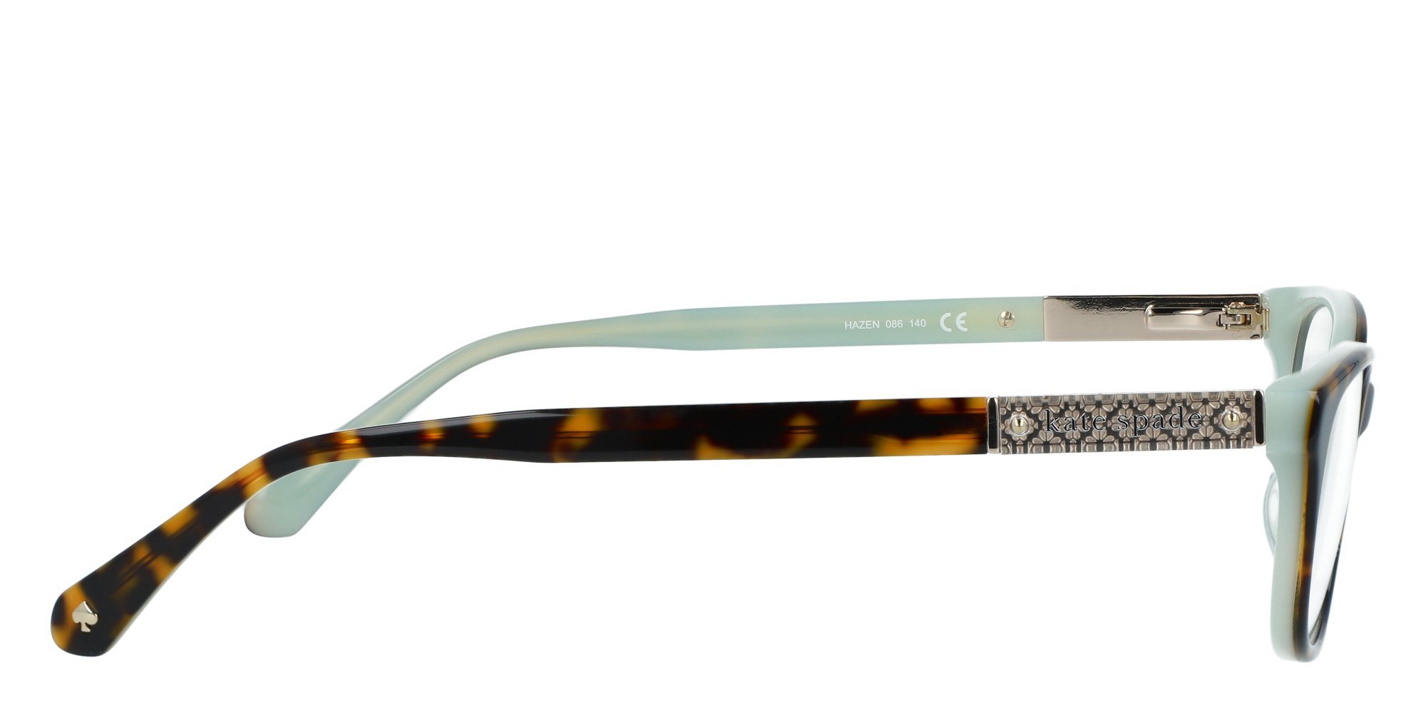 The HAZEN eyeglasses will enrich every women's wardrobe as few accessories can. The acetate structure holds a detail that won’t go unnoticed: the brand’s signature floral-inspired filigree band to trim the temples, accented by engraved Kate Spade lettering. As a final original touch, a secret inscription reading SO HAPPY TO SEE YOU is hidden on the inner temples, and the Spade symbol decorates the end tips.