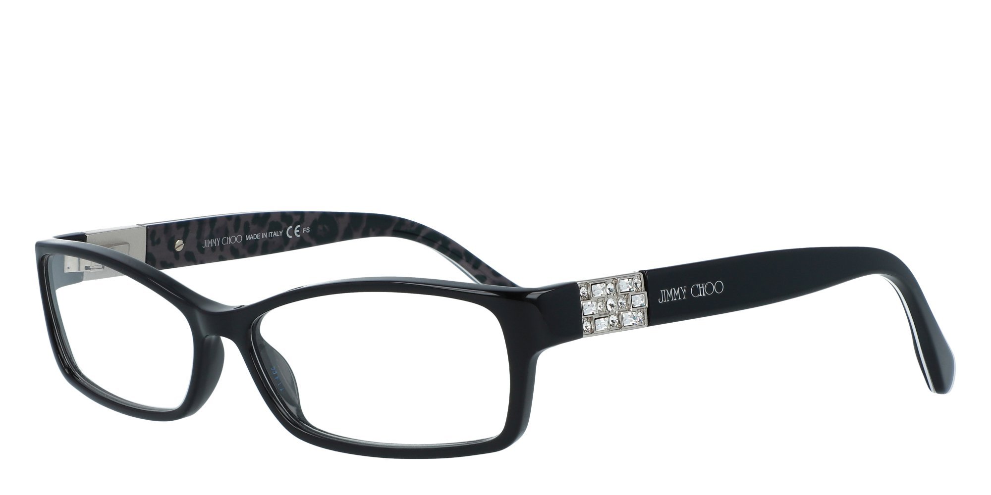 Jimmy Choo's Crystal & Glitter sunglasses are elegantly crafted, experimenting with innovative techniques. The optical frames include crystal strass embellishments for a signature sparkly finish. Crafted to a slim rectangular shape, these optical glasses feature a acetate frame with crystal strass on the temples.