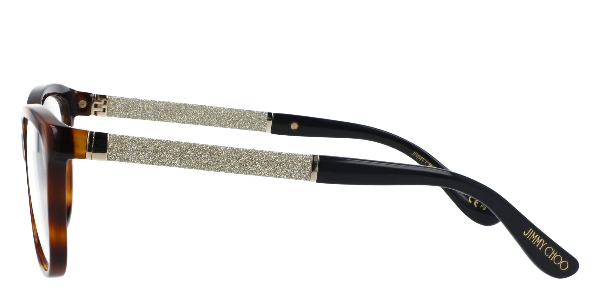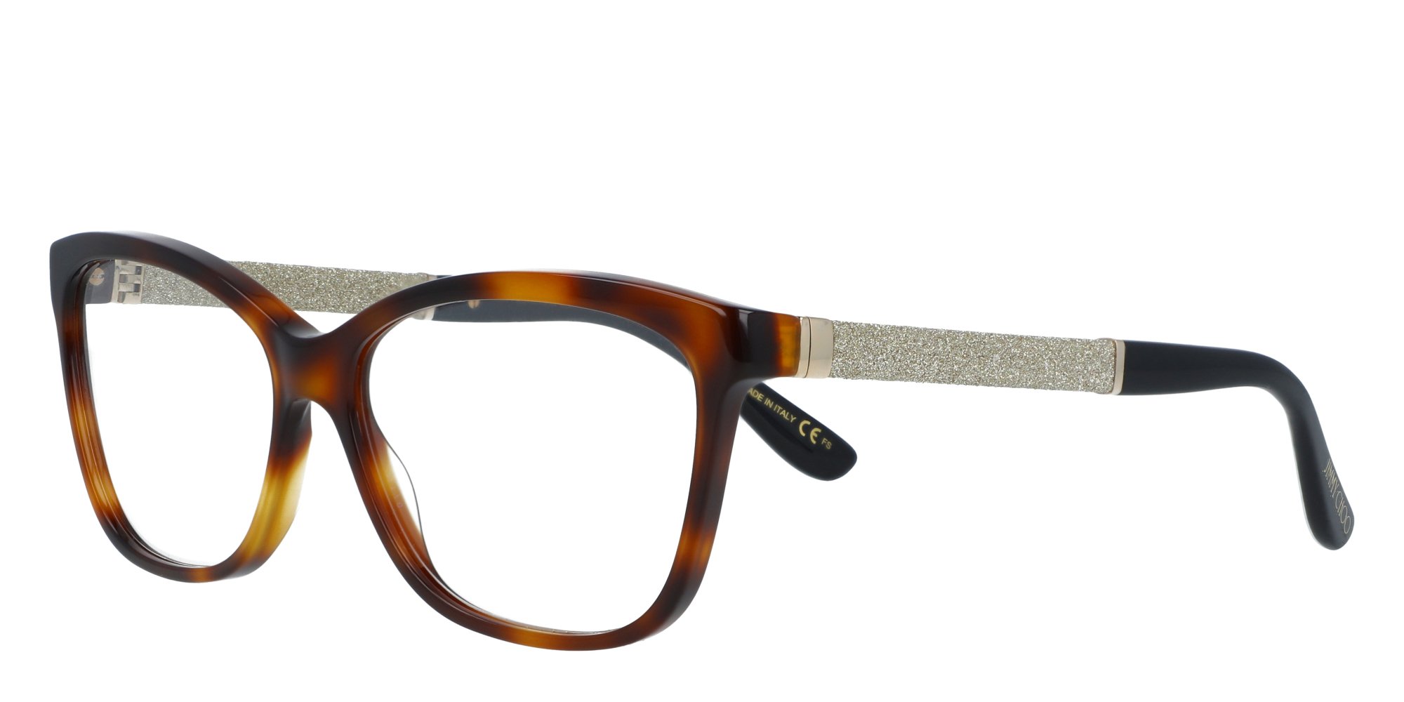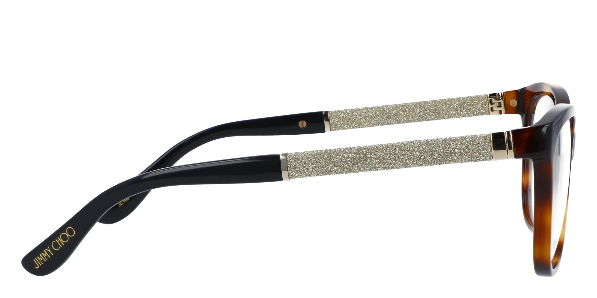 Essentially luxurious: Jimmy Choo's Shine Time eyewear Collection combines refined shapes and precious craftsmanship. Each pair is hand embellished with exclusive Crystal Fabric for a glittery touch. This rectangular optical frame is characterised by a transparent acetate front with a sophisticated shaded effect. The metal temples feature sparkling crystal fabric and tonal tips.