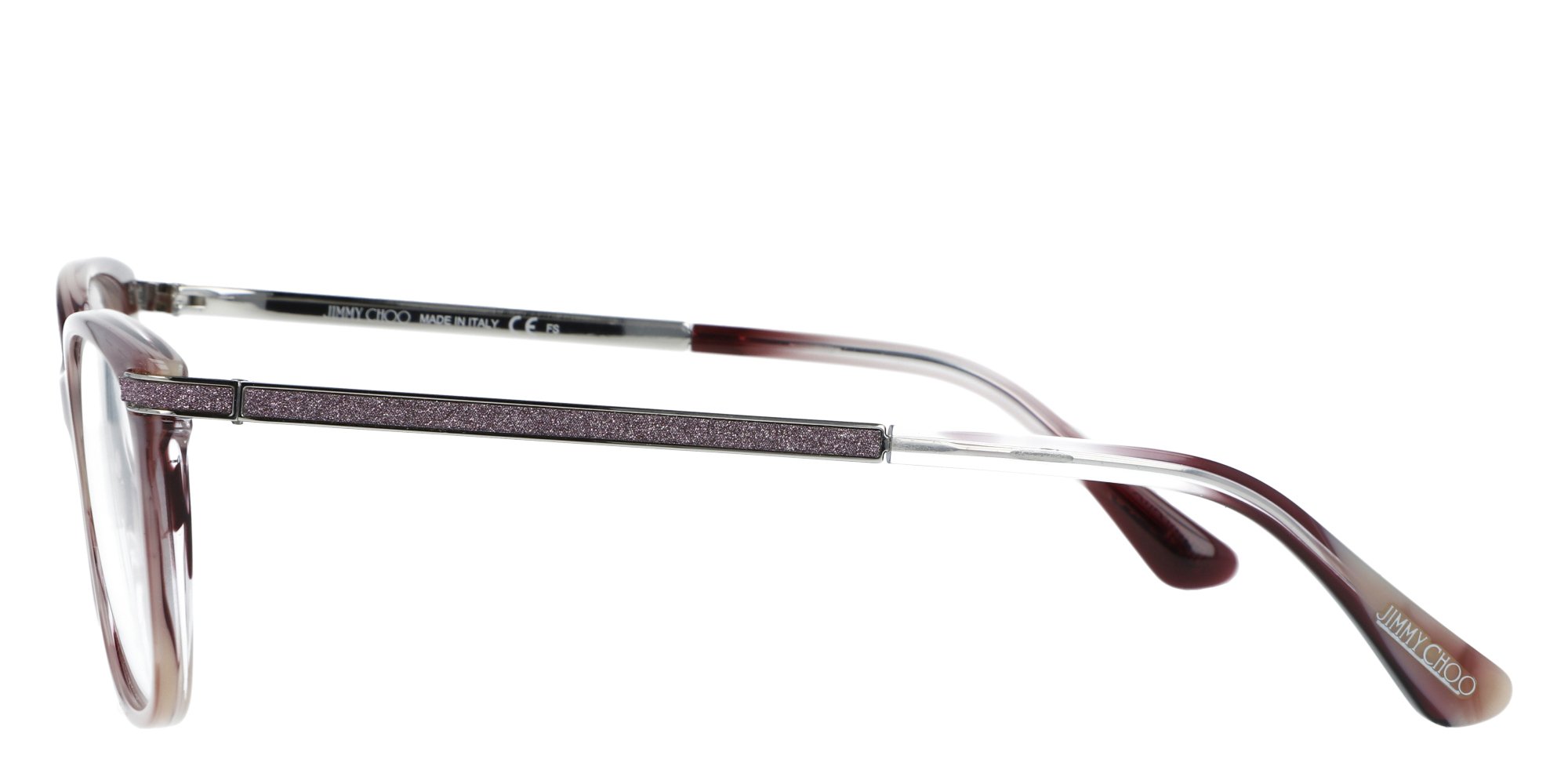 Jimmy Choo presents the new Crystal Stripes eyewear collection the perfect match for the brand's must have sparkling bags and shoes. The optical frames are enriched with eye catching glittery fabric in shaded hues, applied by hand on each frame for a truly glamorous look and feel. Crafted to an easy to wear square shape, the JC269 glasses feature an acetate front and gold tone metal temples. The brown powder crystal fabric glitter is hand applied for an impeccable finish.