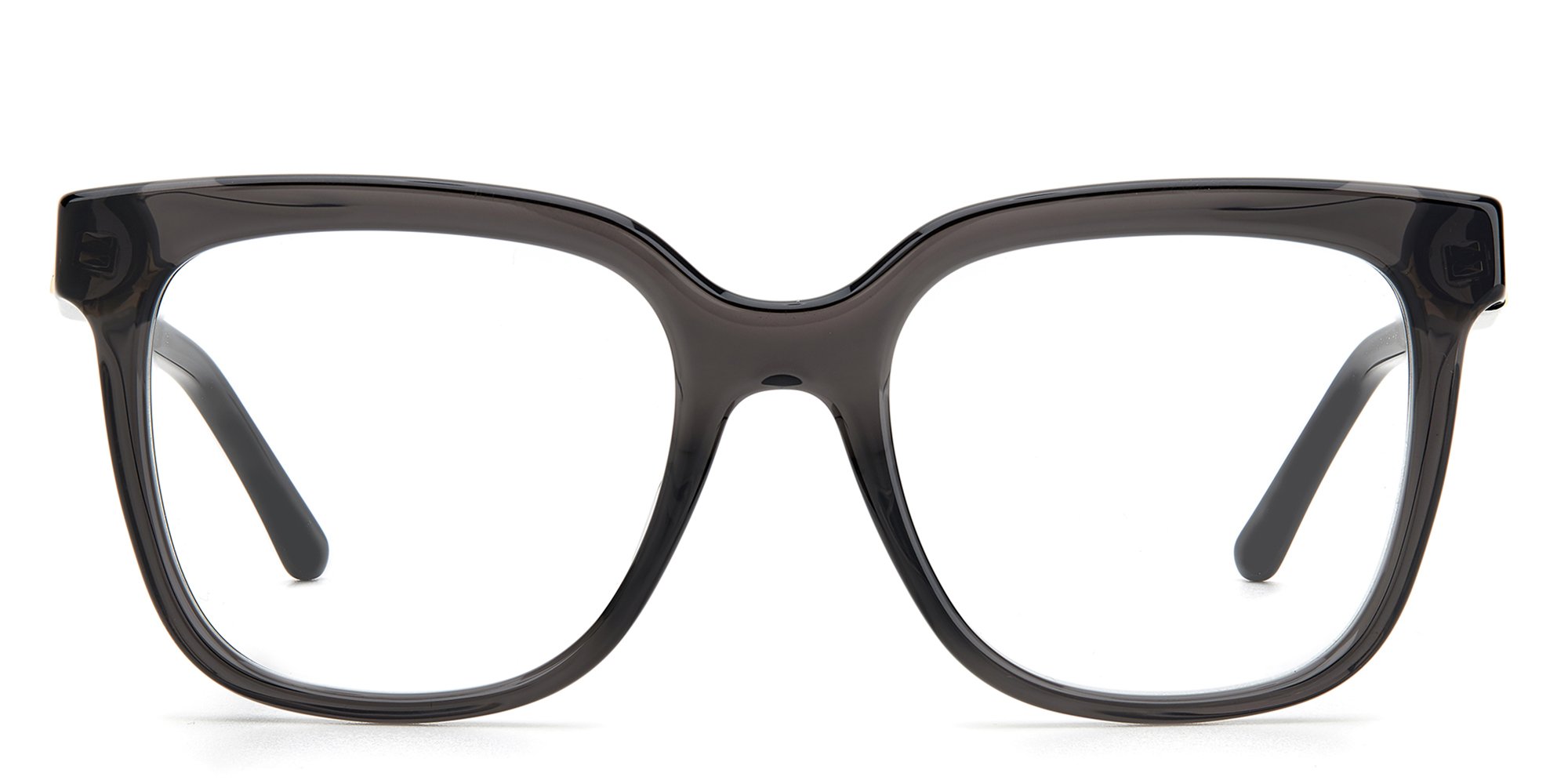 Animal prints, glittery finishes and luxurious Swarovski crystals: the Jimmy Choo JC World eyewear collection incorporates the brands iconic style codes into a range of ultra-glamorous frames, flaunting the JC logo on one temple for an of-the-moment asymmetric look. Crafted from acetate, these square optical glasses stand out for their carved profile, lending a bold aesthetic without foregoing lightness and comfort. Flex hinges ensure a perfect fit.