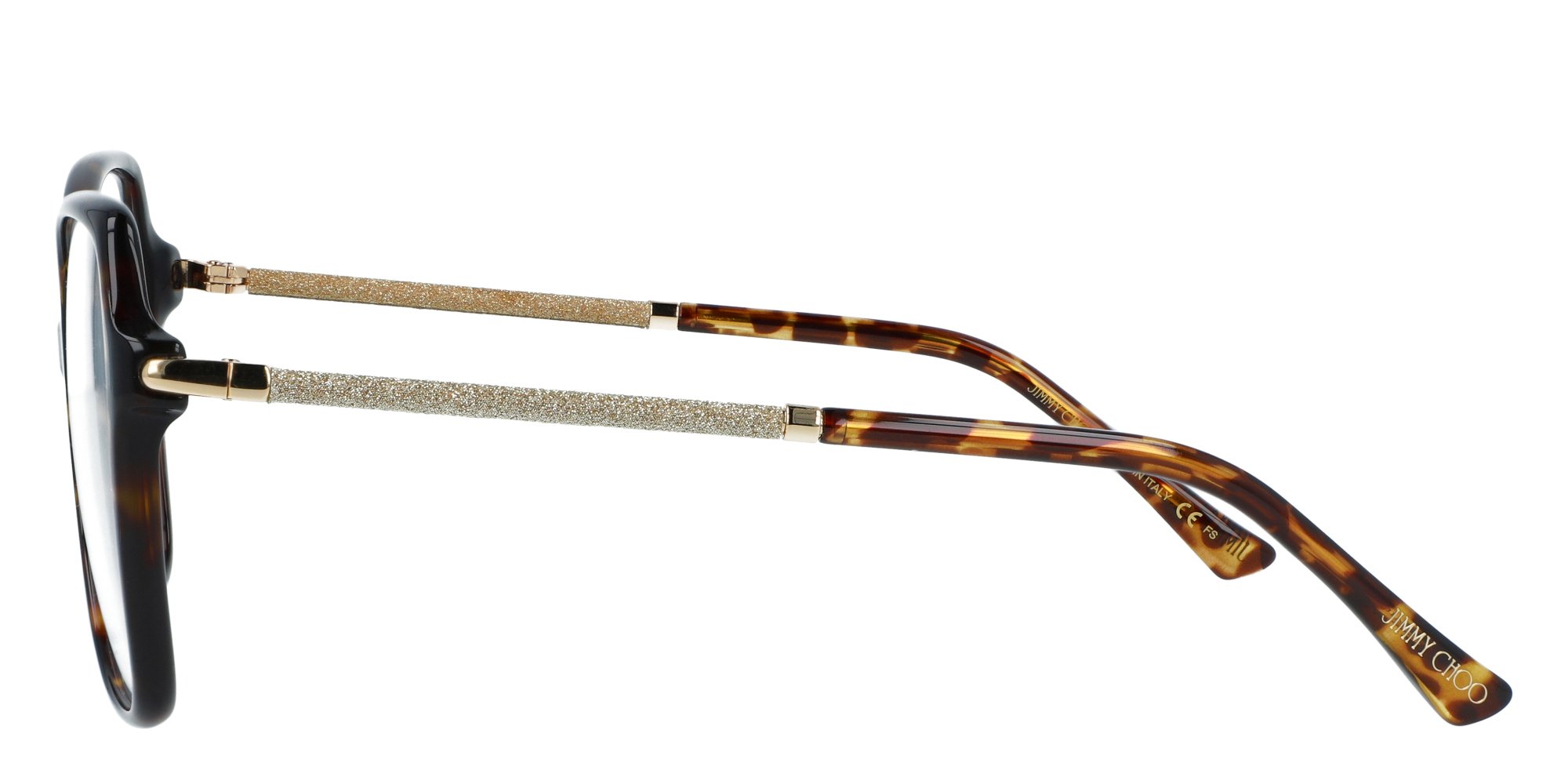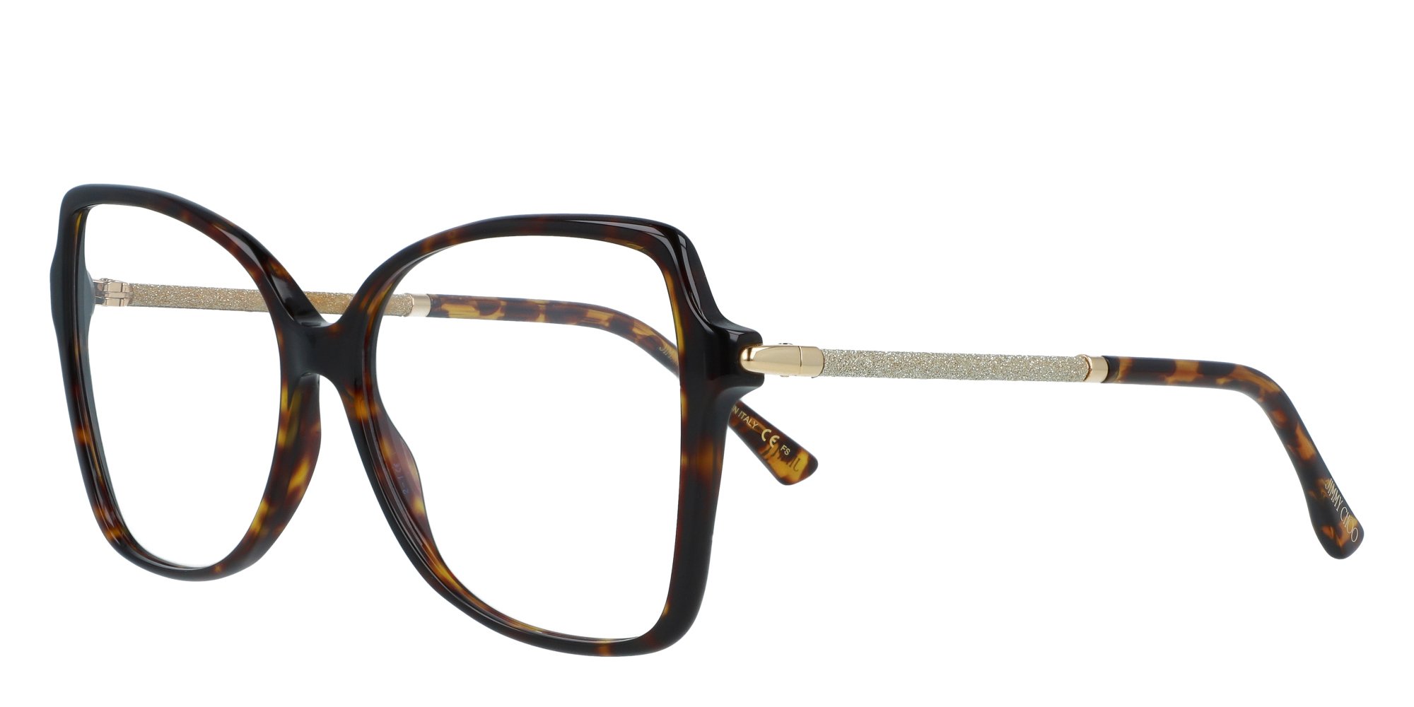 Jimmy Choos Iconic Glitter eyewear collection is the ultimate match for the brands coveted sparkly shoes and bags. Designed with an oversized, feminine butterfly shape, the JC321 optical glasses feature an acetate front and eye catching, glittery tubular temples. The frames are completed with flex hinges and acetate tips for an effortless fit.