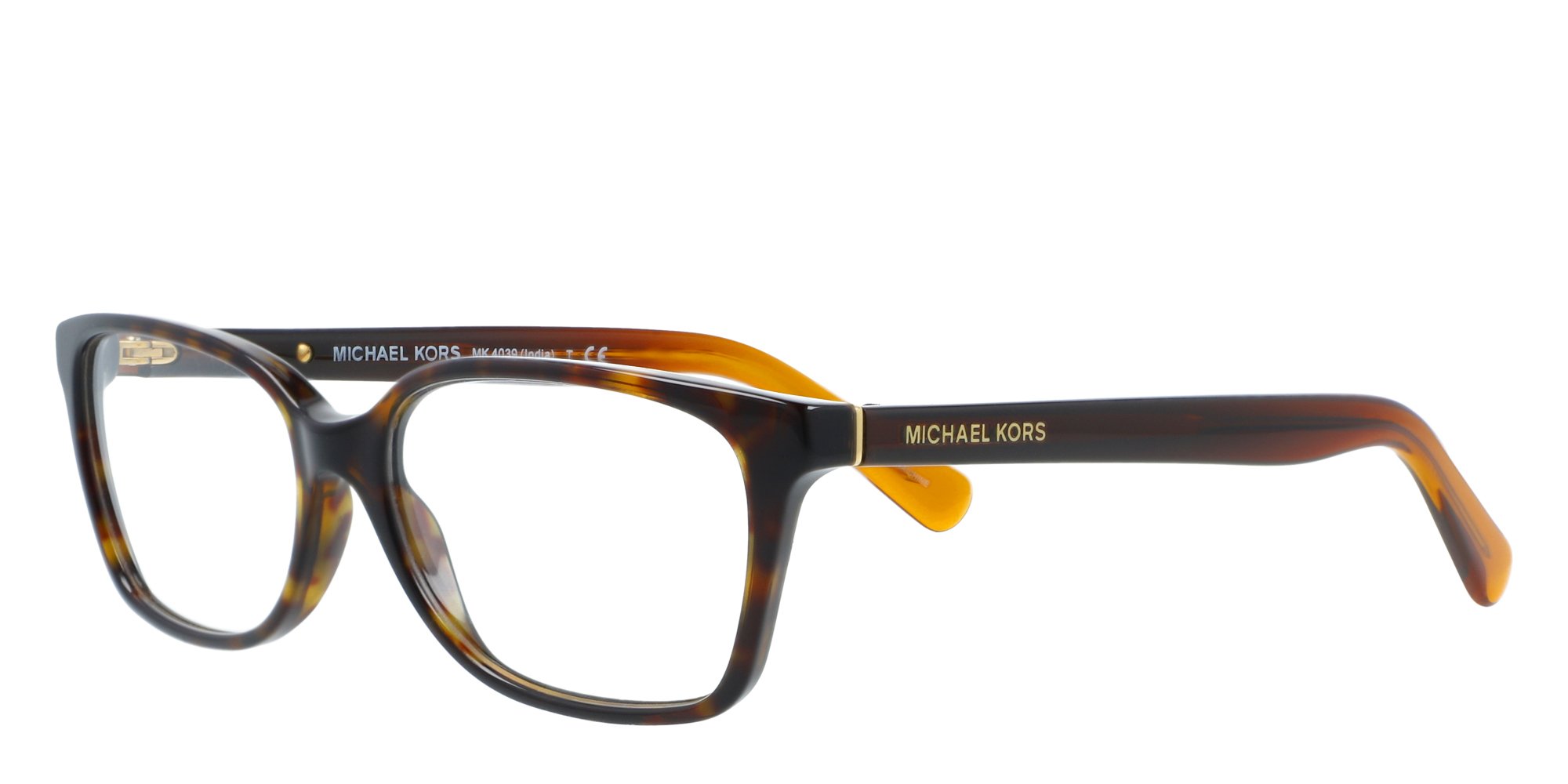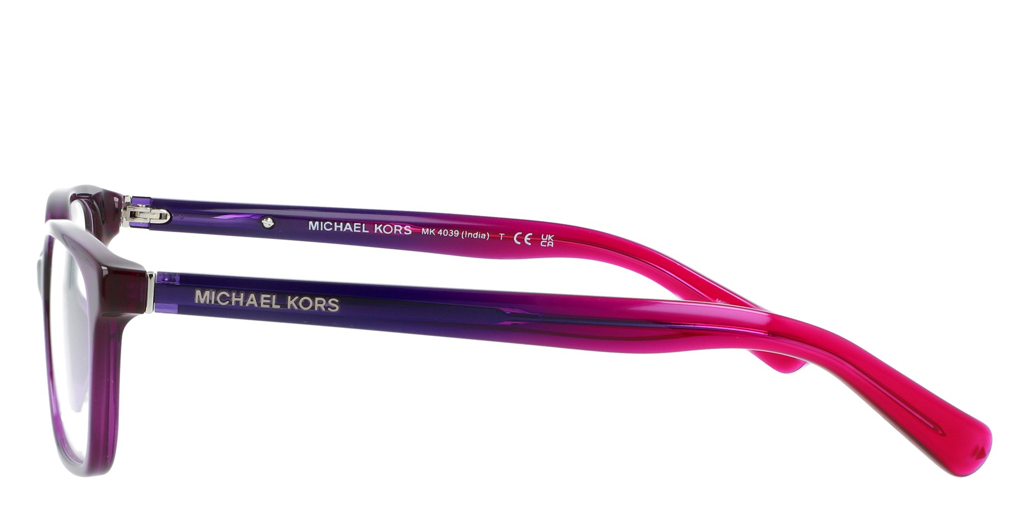 Michael Kors MK4039 eyeglasses offer a classic design in an on trend style. These wingtip inspired full rim frames are constructed in lustrous acetate thats lightweight, yet durable enough to support an active lifestyle. Wire core temples offer a secure fit and feature the signature Michael Kors branding on each side for added appeal. The flexible spring hinges provide a snug but comfortable fit. Michael Kors glasses continue a tradition of impeccable styling, and the MK4039 is a striking example of their craftsmanship.