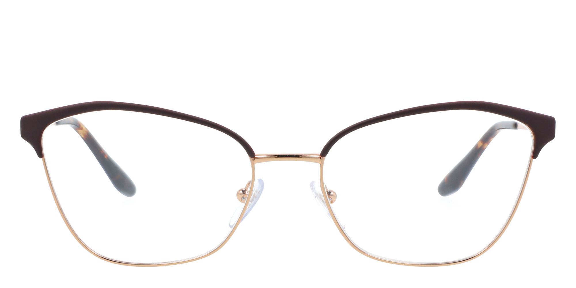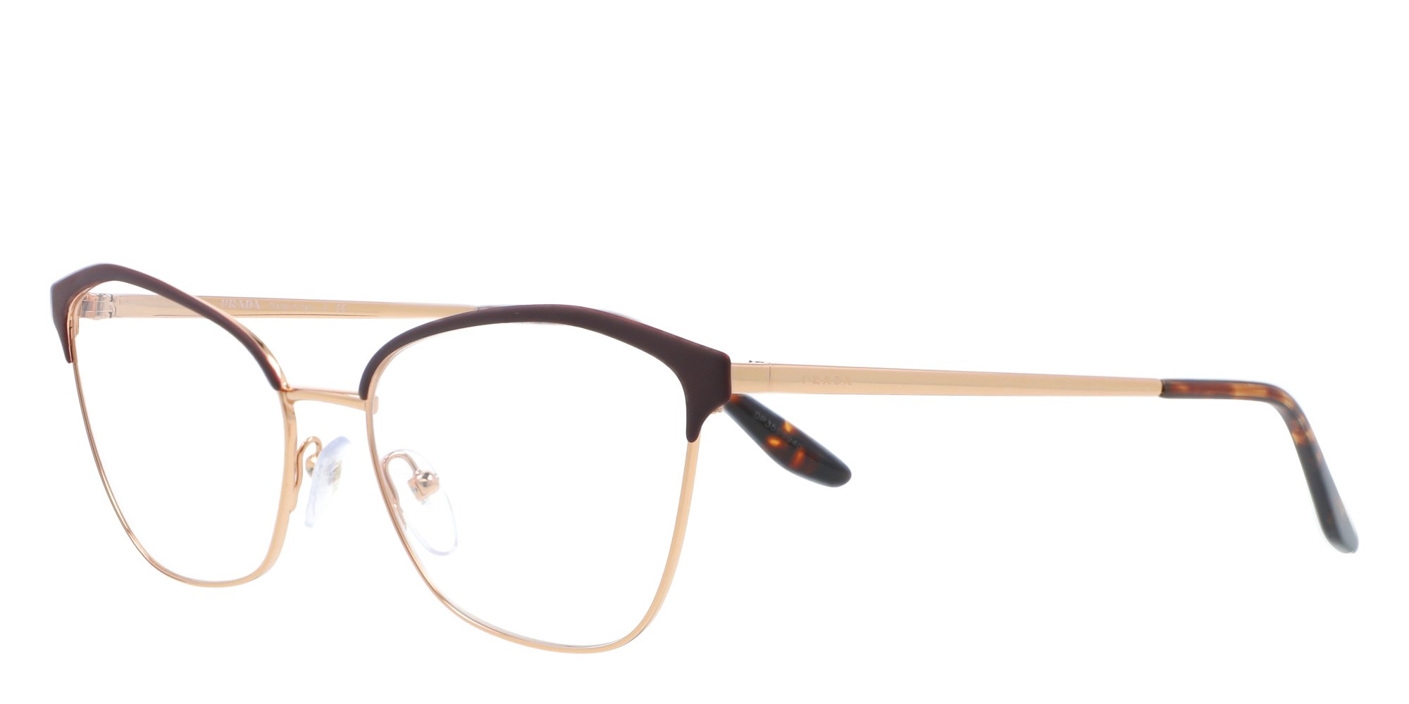 The Prada PR 62XV eyeglasses offer an alluring look for the woman with retro inspired style sensibilities. With a daring split frame profile, pronounced browline, and softly rounded lower rims, these cat eye frames will complement your features without overwhelming them. The petite engraved logo near the hinge adds designer appeal, and the contrasting temple socks promise a comfortable fit behind the ears. Crafted in corrosion resistant metal, these authentic Prada glasses come with easy to repair conventional hinges for added durability.