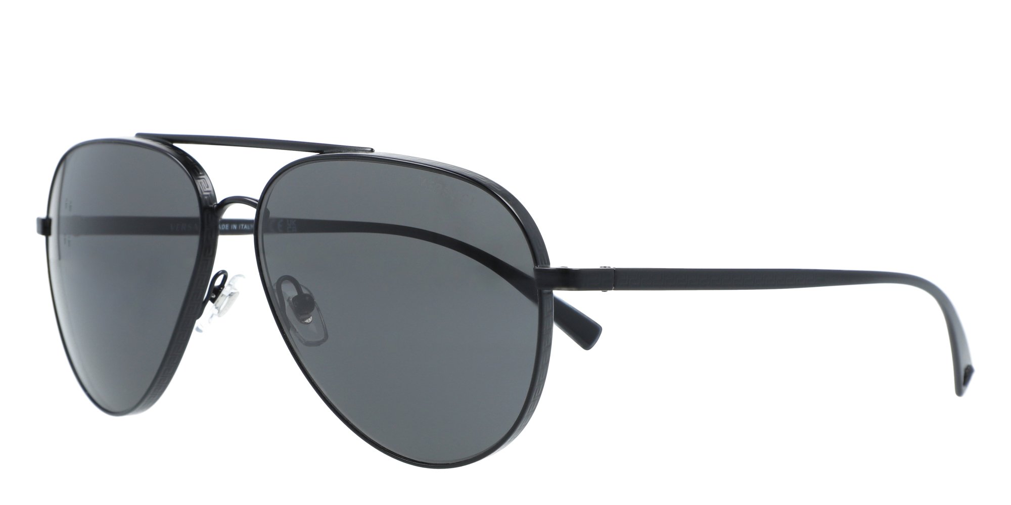 In Versace VE2217sunglasses for men, you get sleek styling and functional eye protection in one package. Resistant to stress and corrosion, the full rim metal frames are highly durable. These angles of these aviator Versace sunglasses flatter the features of oval and round faces, and an elegant double bridge strengthens the rims while adding style points. The wired skull temples curve over the ears for a secure fit. Coated nose pads and temple tips keep these shades comfortable.