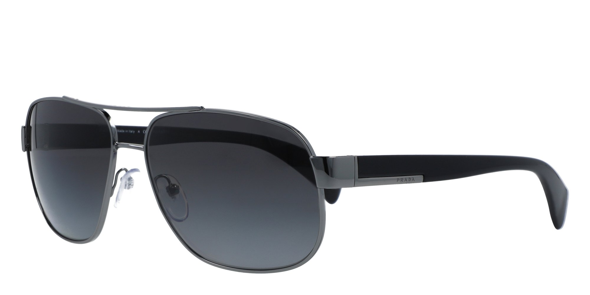 Prada reimagines the classic aviator in these PR 52PS sunglasses. The full rim frames are crafted from lightweight, durable metal with a double bridge construction for added strength. The robust temples are wider at the tips for added stability and feature the Prada logo in metal near the end. Enjoy a retro look with cool, contemporary styling when you reach for these aviator sunglasses from Prada.