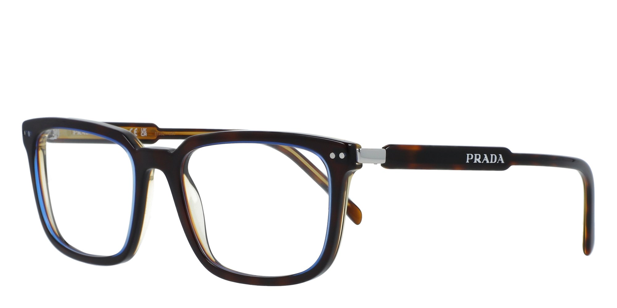 Add an edgy vibe to your everyday style wearing the Prada PR 13YV eyeglasses. These rectangular frames feature bold, full rims and squared off endpoints for a look to complement your features without overwhelming them. The flat temples boast the signature Prada logo and stripes for designer appeal. These authentic Prada eyeglasses come with sturdy conventional hinges for extra durability.