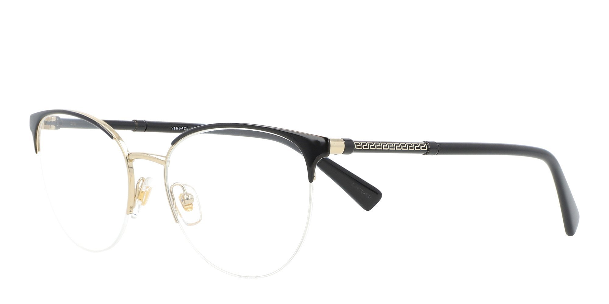 Add sleek sophistication to your look with Versace VE1247 eyeglasses. The delicate half rim frames draw attention to a barely there browline, while the rimless lower half of the lenses seamlessly disappear. Delicate accents, like an elegant single bridge and detailing on the temples, complement the metal frames, adding long lasting good looks to this durable eyewear. Adjustable nose pads customize the fit. These Versace eyeglasses leave you looking as smart as you are.