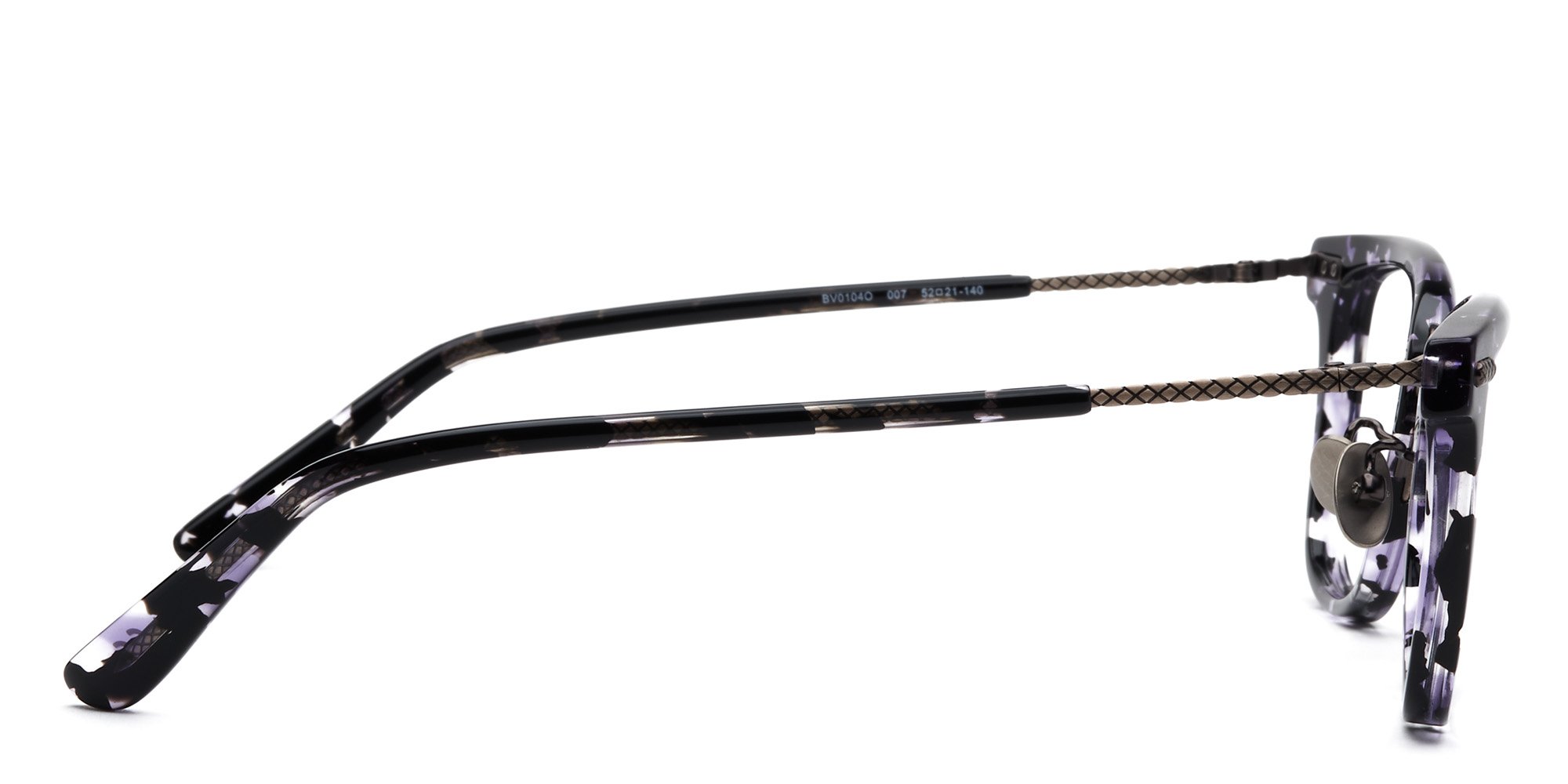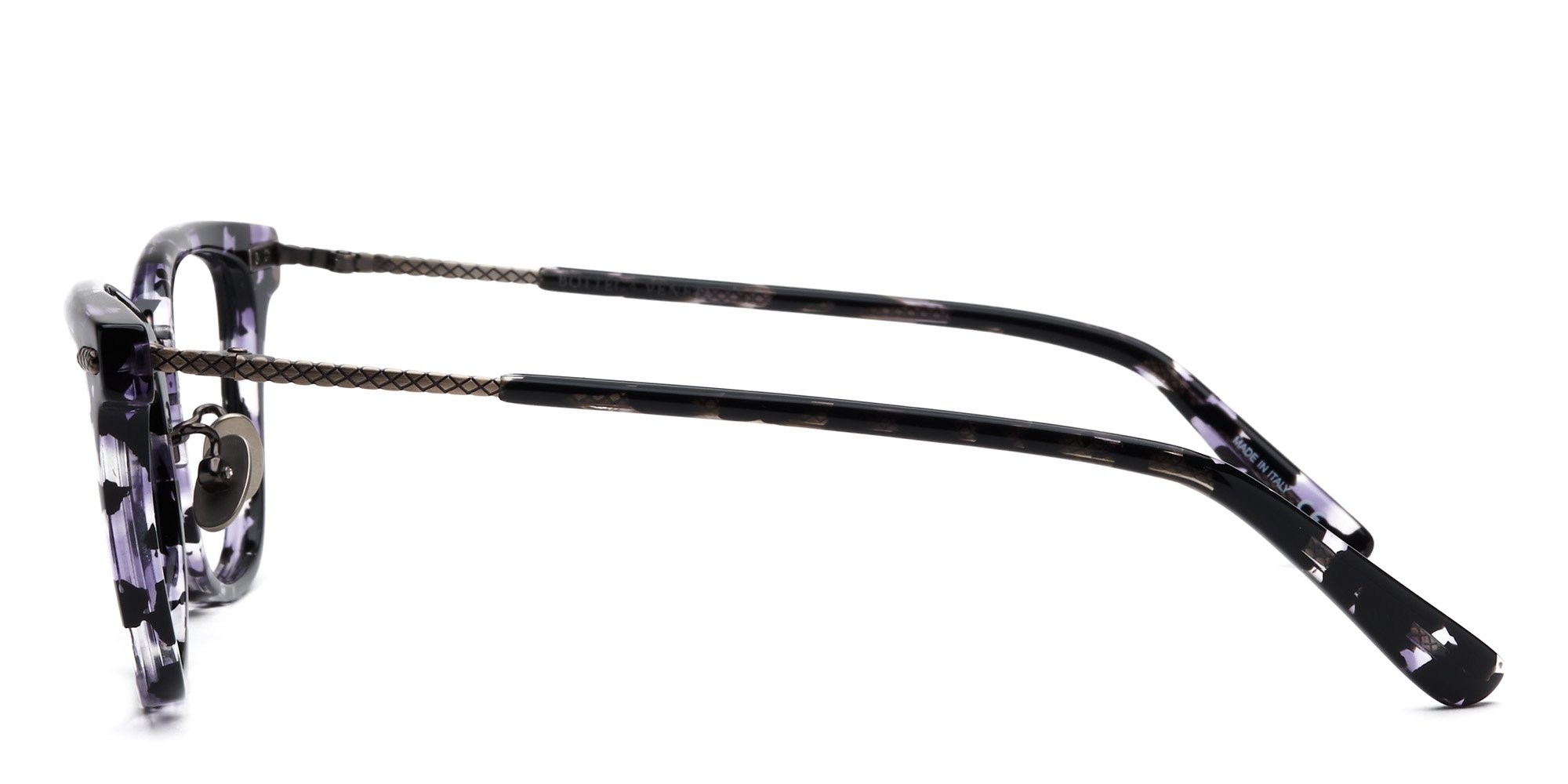 Show off your fashion forward style wearing the BV01040 eyeglasses by Bottega Veneta. Bold, cat eye frames with a metal bridge and silicone nose pads offer a sophisticated look. Crafted from lightweight, durable acetate, these glasses are tough enough to take you through your busiest days. Slim temples with metal detailings ate the wing tips are elegant and refined. If you're looking for frames in a contemporary design that turns heads, these Bottega Veneta glasses are a smart choice.