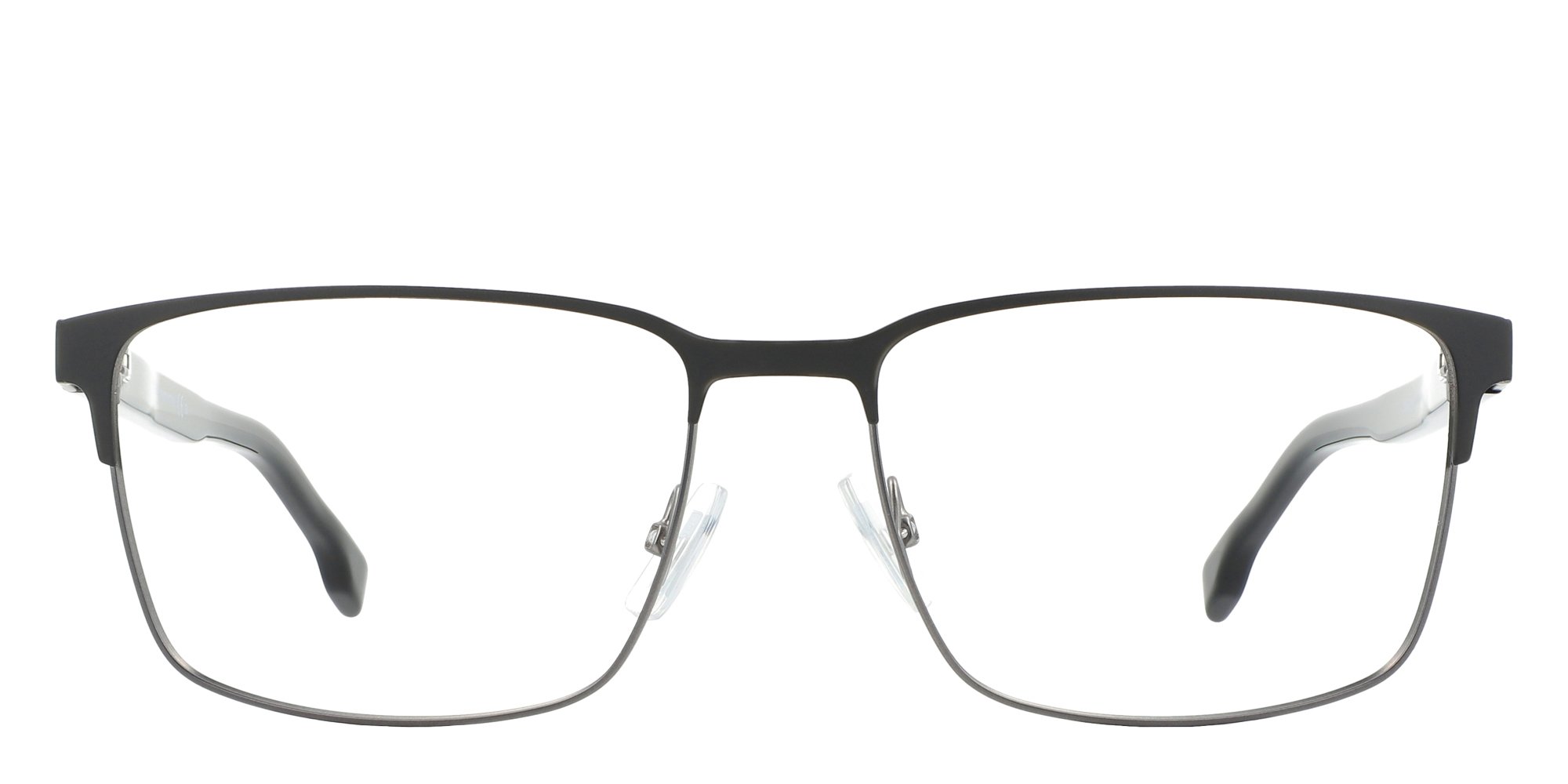 The Hugo Boss Boss 1301/U eyeglasses appeal to the modern wearer who wants to make a fashionable statement. Crafted in a combination of metal and performance acetate, these rectangle frames are at once lightweight and sturdy. The Hugo Boss logo adds designer appeal. Whether you're looking for an everyday pair of glasses or something special for a night out, these clubmaster inspired frames are sure to turn heads.