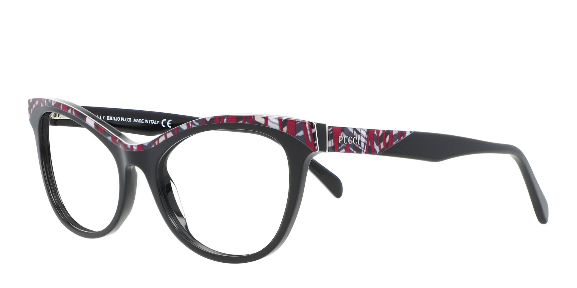 Emilio Pucci offers a dramatic take on classic cat eye glasses in these designer frames. The bold, upswept browline widens as it reaches the wingtip endpoints, where chunky coordinating temples articulate with the top of the rims. Crafted in acetate, the frames are lightweight but sturdy and feature a lustrous finish befitting their luxury label. Embossed signature branding adds designer appeal at the brow end of these alluring eyeglasses from Emilio Pucci.