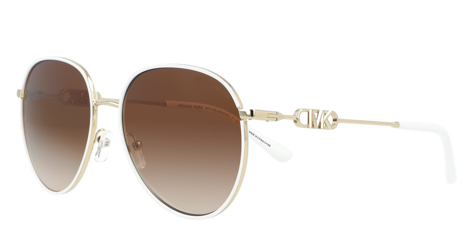 Glamour meets function in the MK1128J sunglasses by Michael Kors. The metal frames are hypoallergenic, lightweight, and durable for lasting beauty. Their wingtips curve inward for stability behind the ears, and come coated with socks over the tips to keep them from slipping during active pursuits. Step out in style wearing these cool shades from Michael Kors.