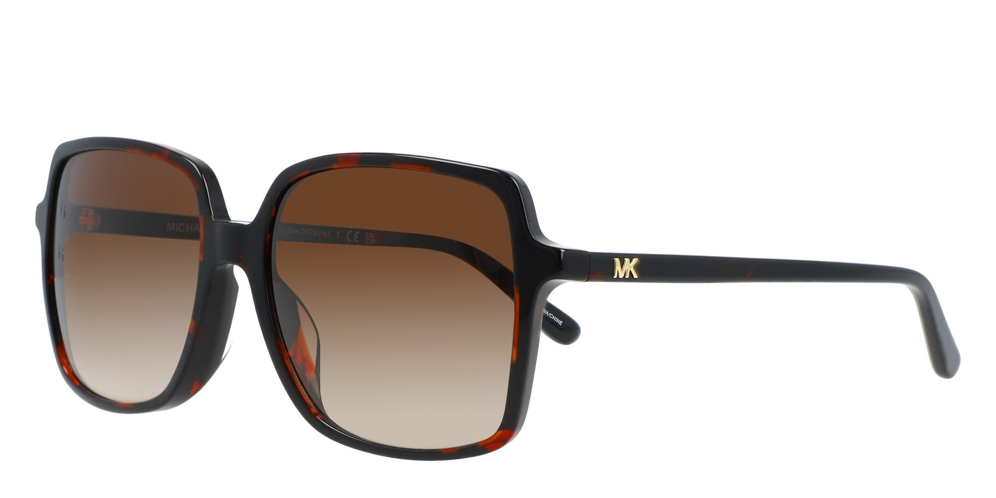 Michael Kors' MK2098U sunglasses series frames are made from hypoallergenic, lightweight acetate, offering durable wear with slim wire core temples that curve inward gently for stability behind the ears. A metallic band at the brow end adds elegance to these timeless shades. Enjoy luxury design wherever you go wearing these chic sunglasses from Michael Kors.