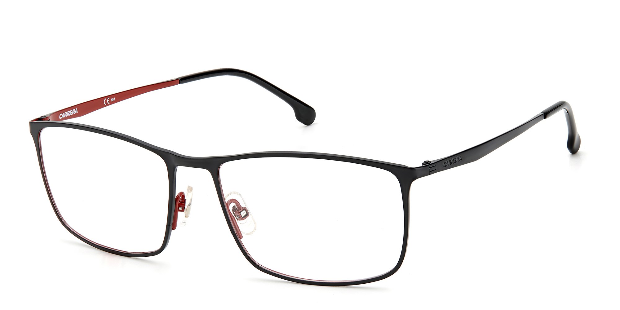 Radiating a rugged and urban aesthetic, the Carrera 8857 eyeglasses for men embody a bold style. Crafted with rectangular metal rims, these glasses offer a combination of lightweight comfort and durability. The slim temples curve inward gently, ensuring stability and a secure fit behind the ears. With their clean and timeless design, these glasses from Carrera deliver a lasting quality that complements any look. Embrace a sleek urban edge with these exceptional eyeglasses.