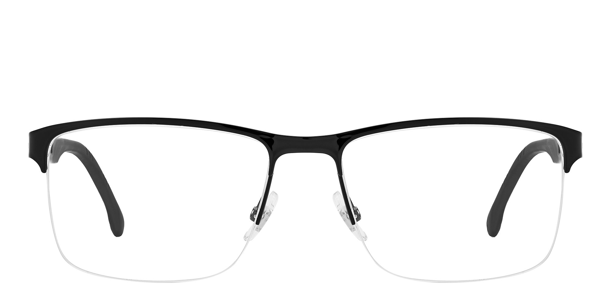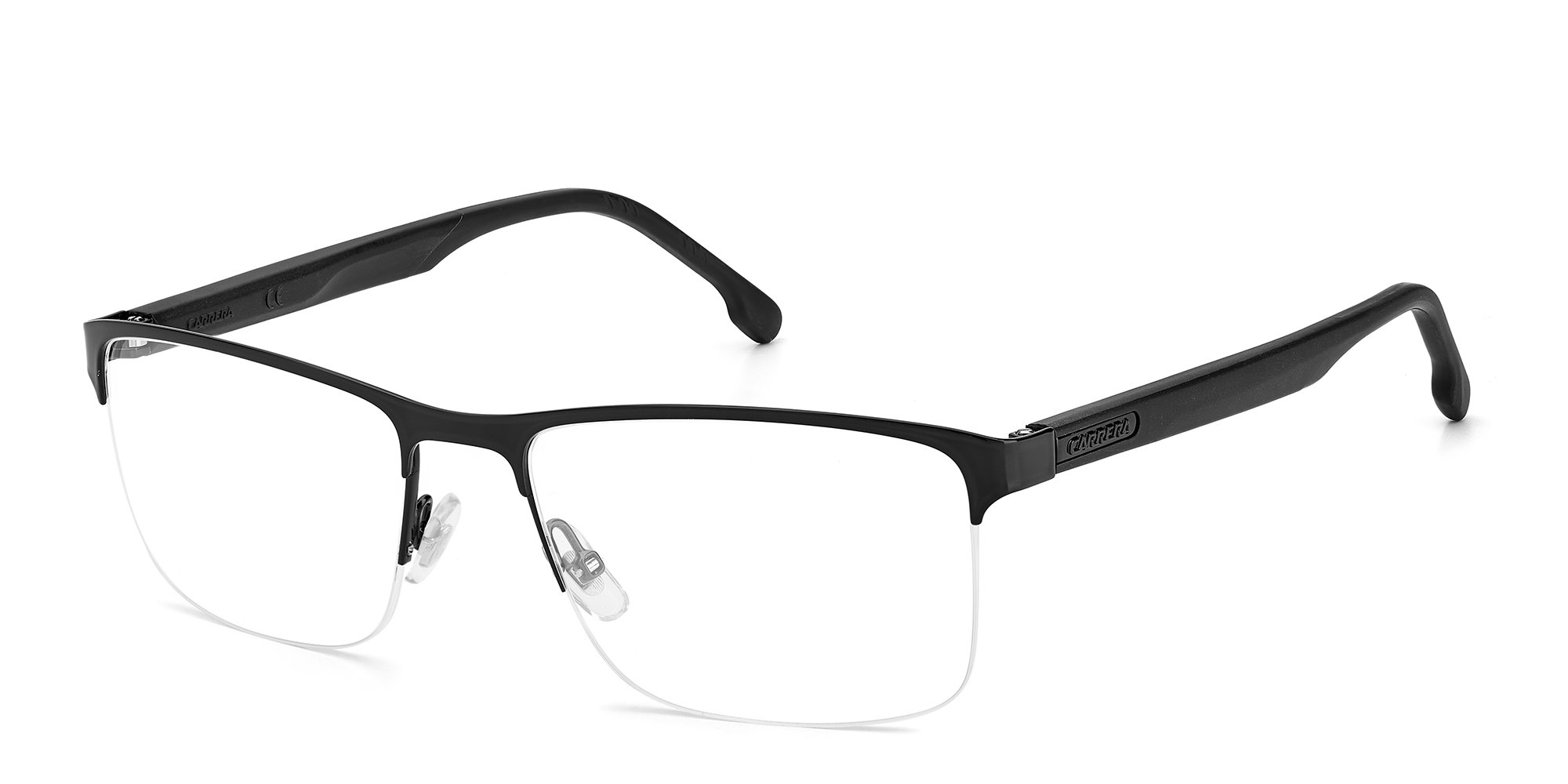 Embrace a sporty and stylish look with the Carrera 8870 eyeglasses for men. Crafted with rectangular metal rims, these glasses offer a combination of lightweight comfort and long-lasting durability. The metal rims gracefully rest above the browline, while the plastic temples ensure a comfortable fit behind the ears. The semi-rimless frames provide an unobstructed view of your surroundings, making them advantageous for activities like driving or playing tennis. Elevate your performance with these eyeglasses that blend functionality with a sleek aesthetic