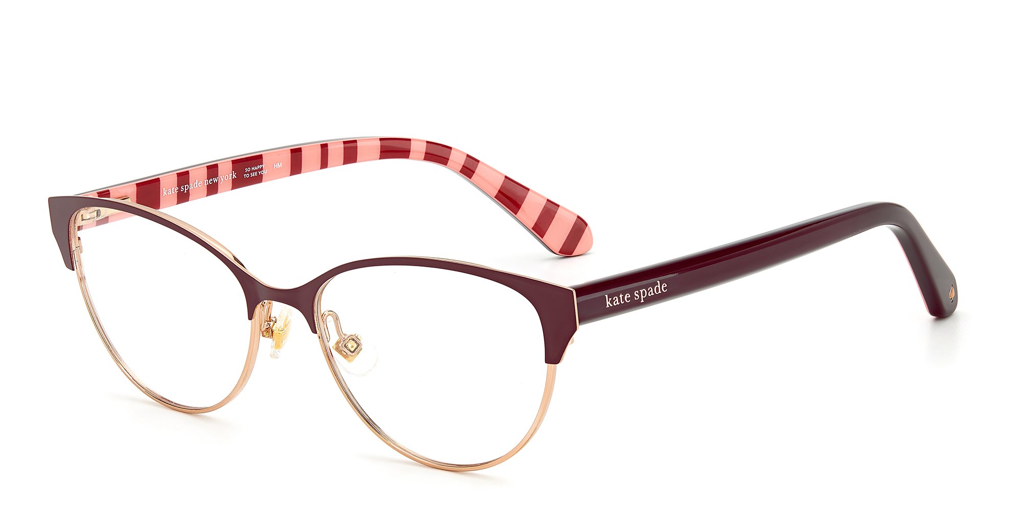 Discover the modernized rendition of classic horn-framed glasses with the Kate Spade Emilyn eyeglasses. These glasses offer a stylish update, combining rounded edges and gently winged browlines that beautifully accentuate your eyes. The thick rims provide a striking visual contrast, adding an element of elegance to your look. Crafted from lightweight and durable plastic, these glasses ensure a comfortable wearing experience while exuding a chic urban style. To add a touch of sophistication, subtle metallic details grace the endpoints of these timeless frames. With their blend of contemporary design elements and timeless appeal, the Emilyn eyeglasses by Kate Spade are the perfect choice for women who appreciate enduring style with a modern twist.