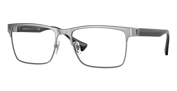 The men's Versace VE1285 eyeglasses radiate a sense of urban chic. Designed with rectangular metal frames, they offer a perfect blend of lightweight construction and durability. The gently inward-curved wire-core temples not only provide stability but also add a stylish touch near the brow end. Moreover, the metal plates on each temple proudly showcase a bold and edgy fashion statement from Versace, appealing to men with a distinctive sense of style.