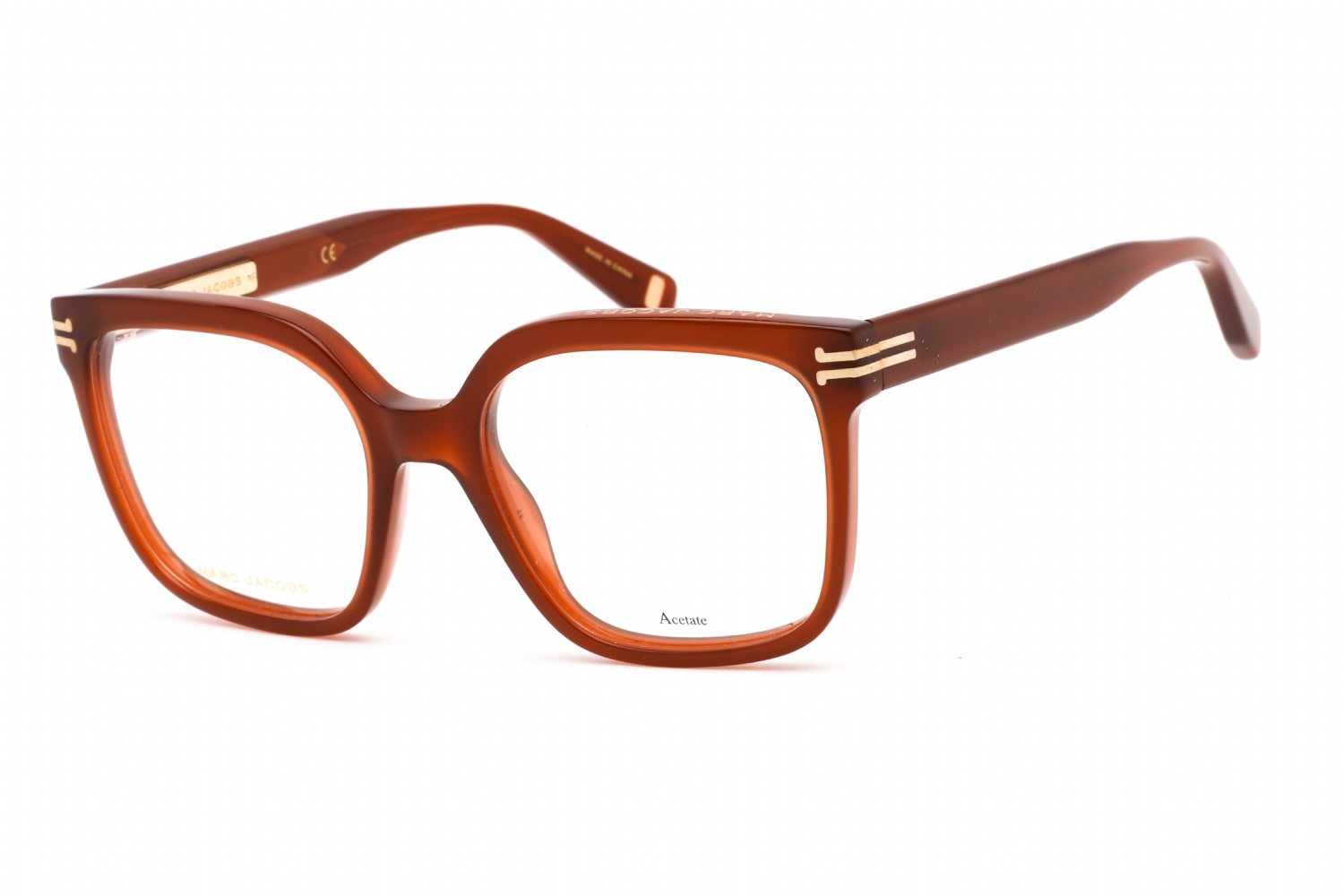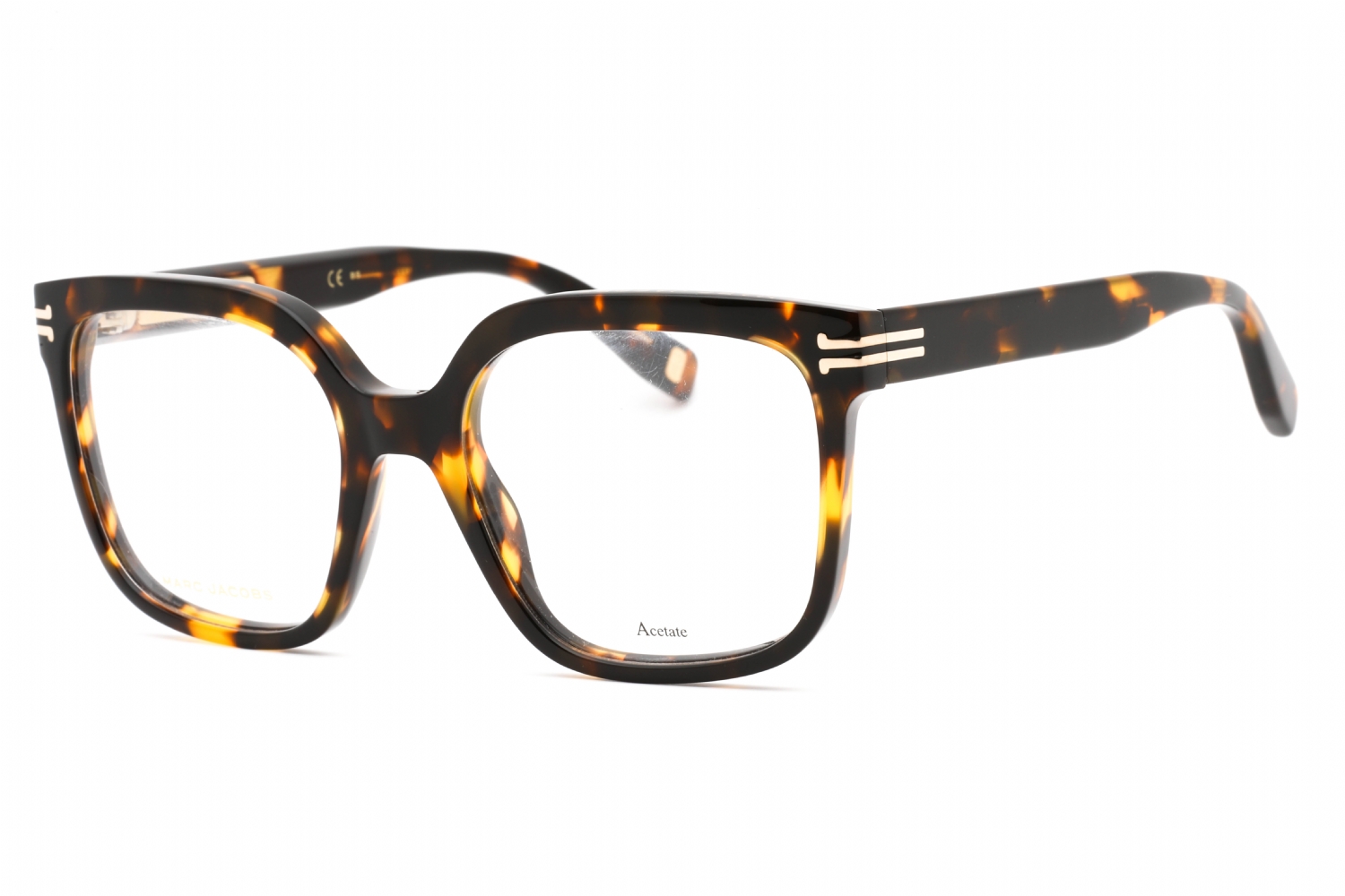 Unleash elegance with the Marc Jacobs MJ 1054. These prescription glasses are sculpted from acetate in a large square silhouette with beveled detailing. Marc Jacobs rebellious spirit is evident in the engraved logo on the brow bar, iconic JJ motif along the temples, and metal logo plaques. The five-washer hinges ensure durability for the design-loving trendsetter.