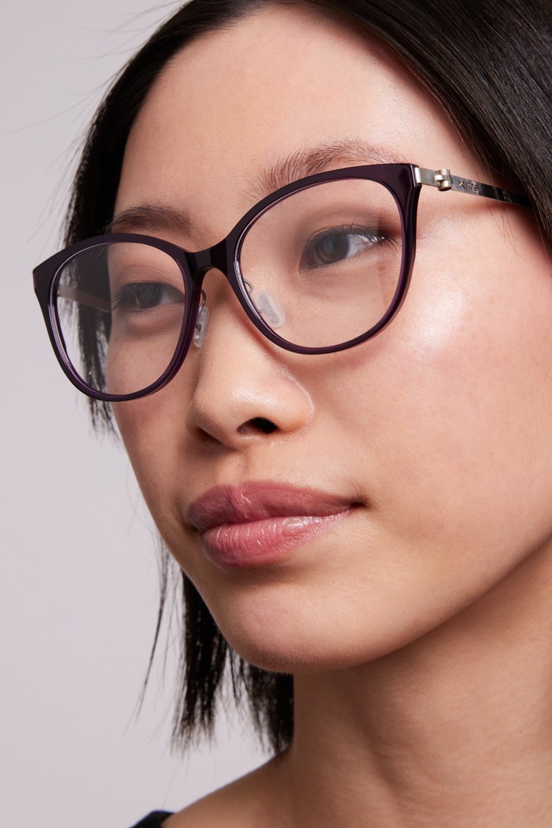 - Hybrid frame made of thin TR90 and steel.