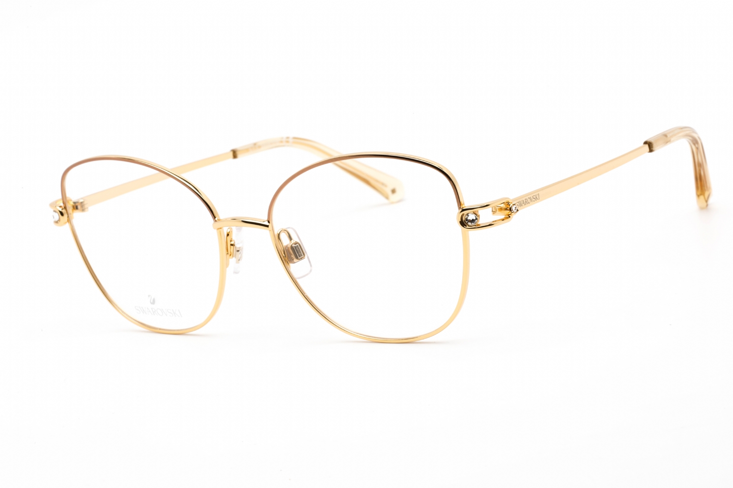 The Swarovski SK5398 eyeglasses blend elegance with modern style. Founded in 1895, Swarovski has a rich history of craftsmanship, specializing in crystal products that shine. The SK5398 captivates with its unique cat-eye design and luxurious mixed material composition, making it perfect for fashion-forward individuals. Step into sophistication and turn heads with every glance, whether at the office or a social gathering. Swarovski frames add a touch of glamour and modernity to any outfit.