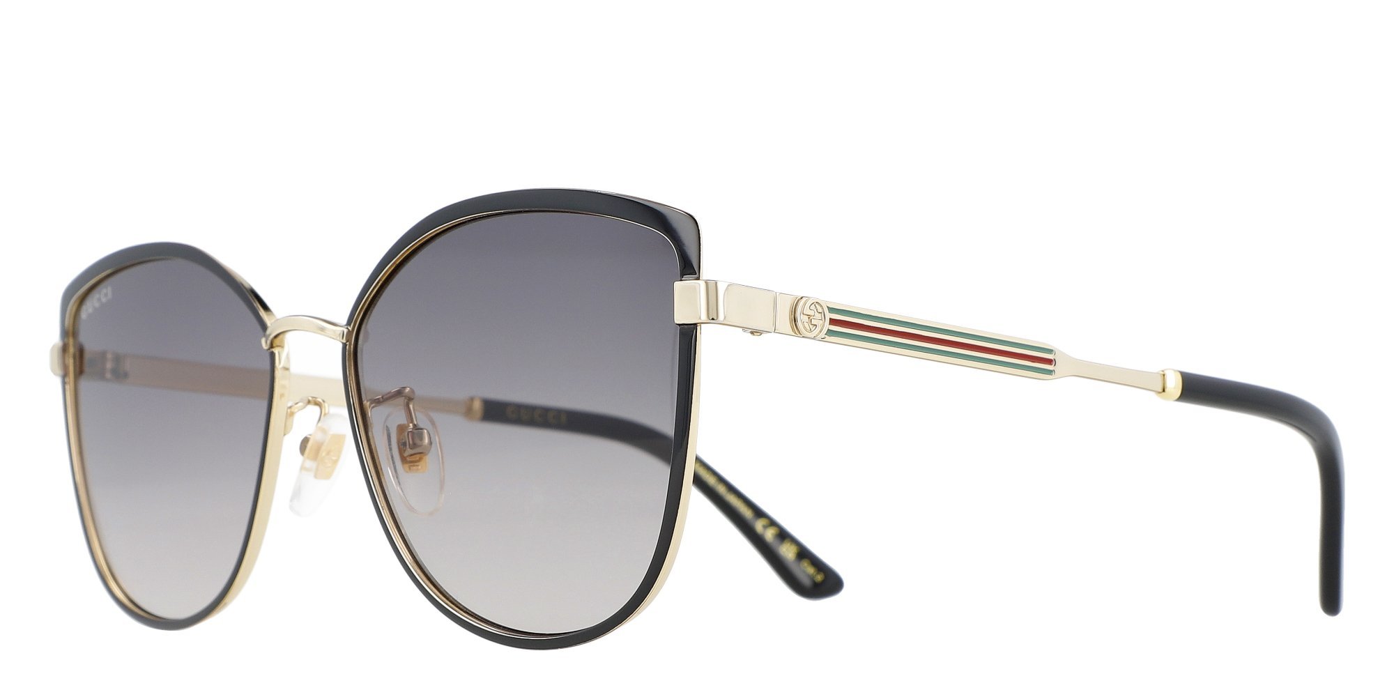 Chic and alluring, the Gucci GG0589SK Cat Eye sunglasses feature a striking metal frame with a bold cat-eye shape. The design exudes glamour and sophistication, while the tinted lenses provide essential UV protection. These sunglasses are perfect for making a stylish statement wherever you go.