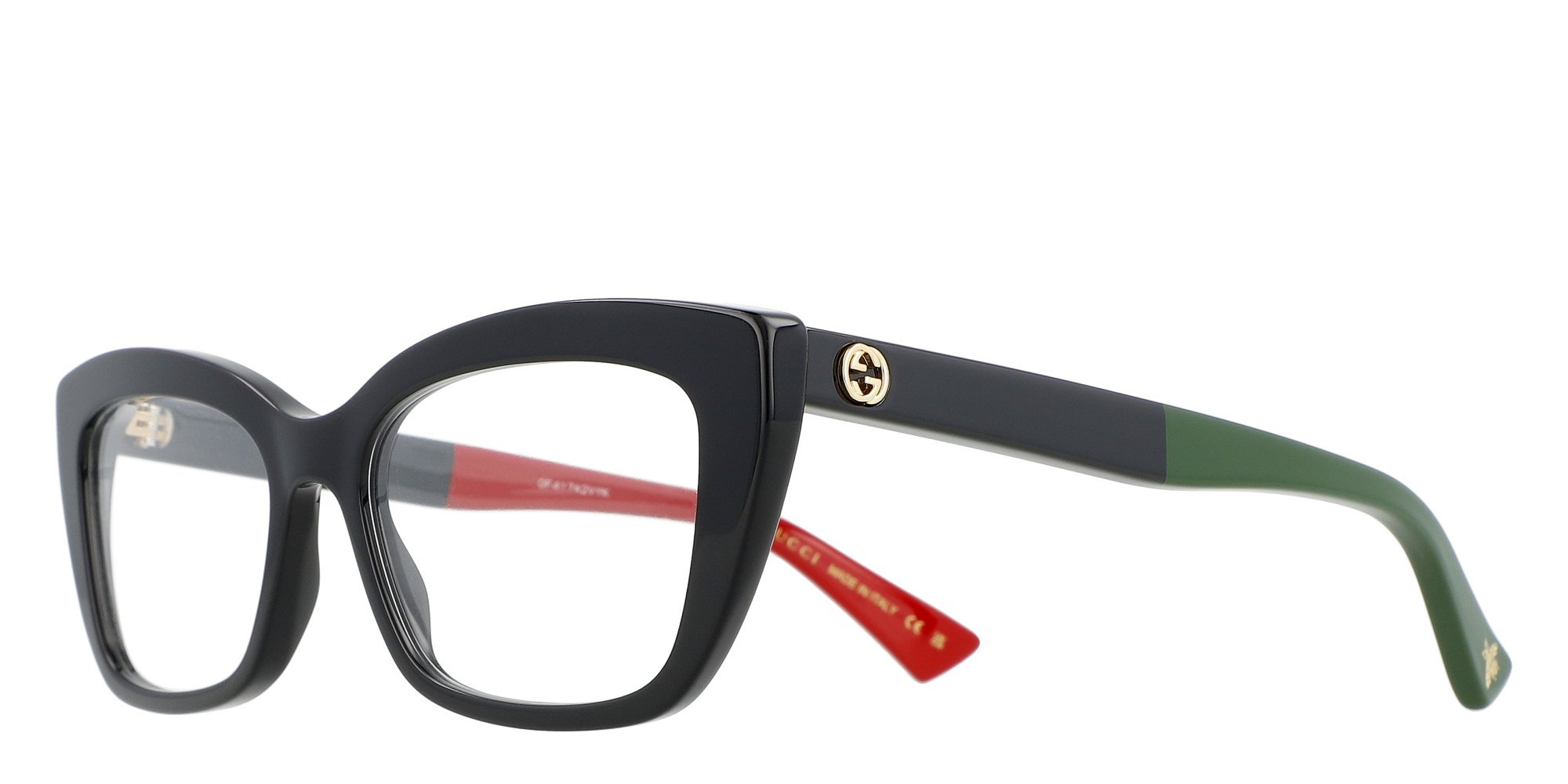 The Gucci GG0165ON Optical frames feature a striking cat-eye design crafted from premium acetate. Perfect for those who want to make a bold statement, these frames offer both style and comfort. The Gucci logo on the temples adds a touch of luxury to this fashion-forward accessory.