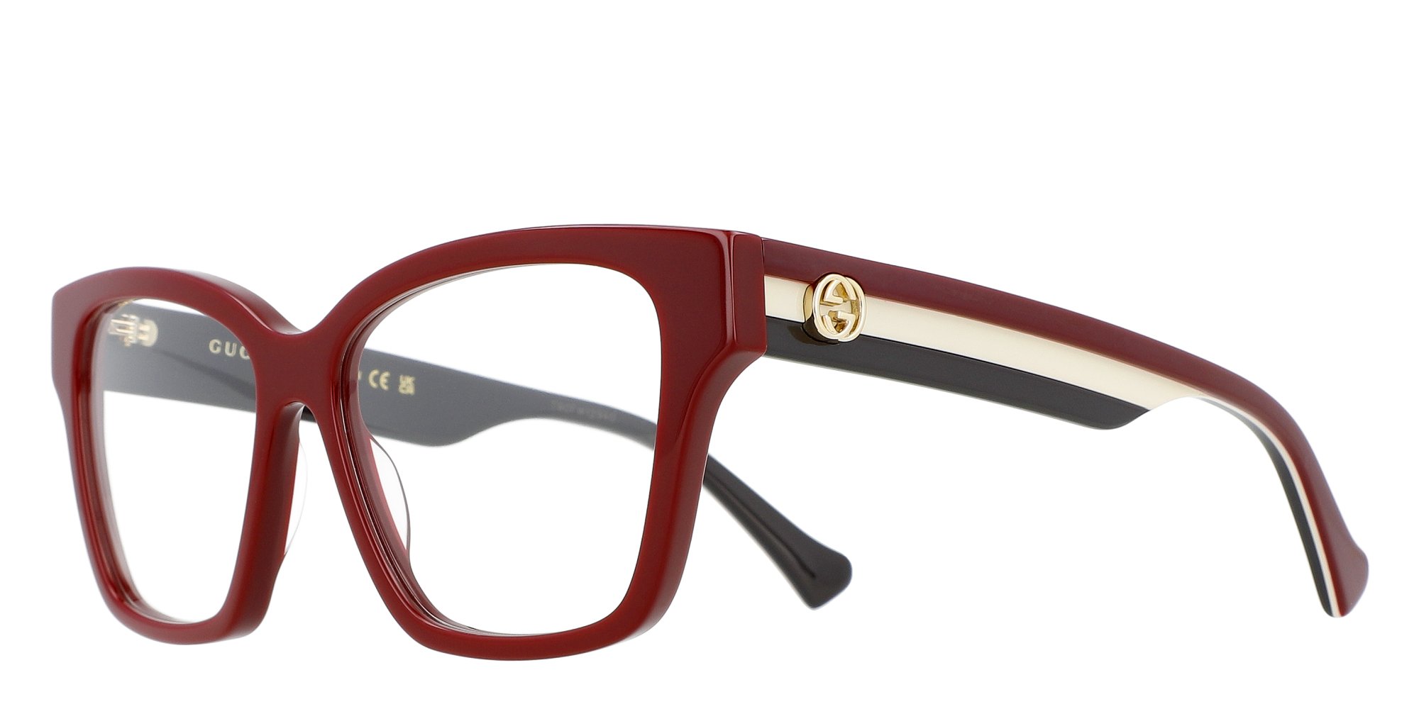 The Gucci GG1302O Rectangle Optical frames combine modern design with sustainability, featuring an eco-friendly construction. These rectangular frames offer style and comfort, with Guccis signature logo on the temples adding a distinctive touch. A perfect choice for those looking to reduce their environmental impact without compromising on luxury.